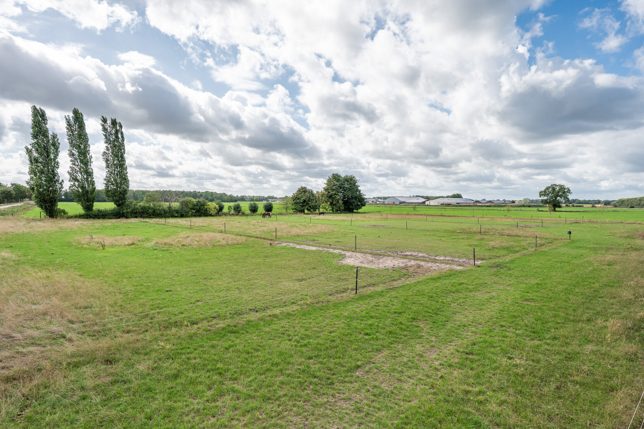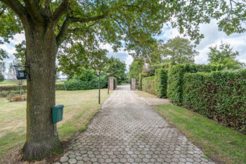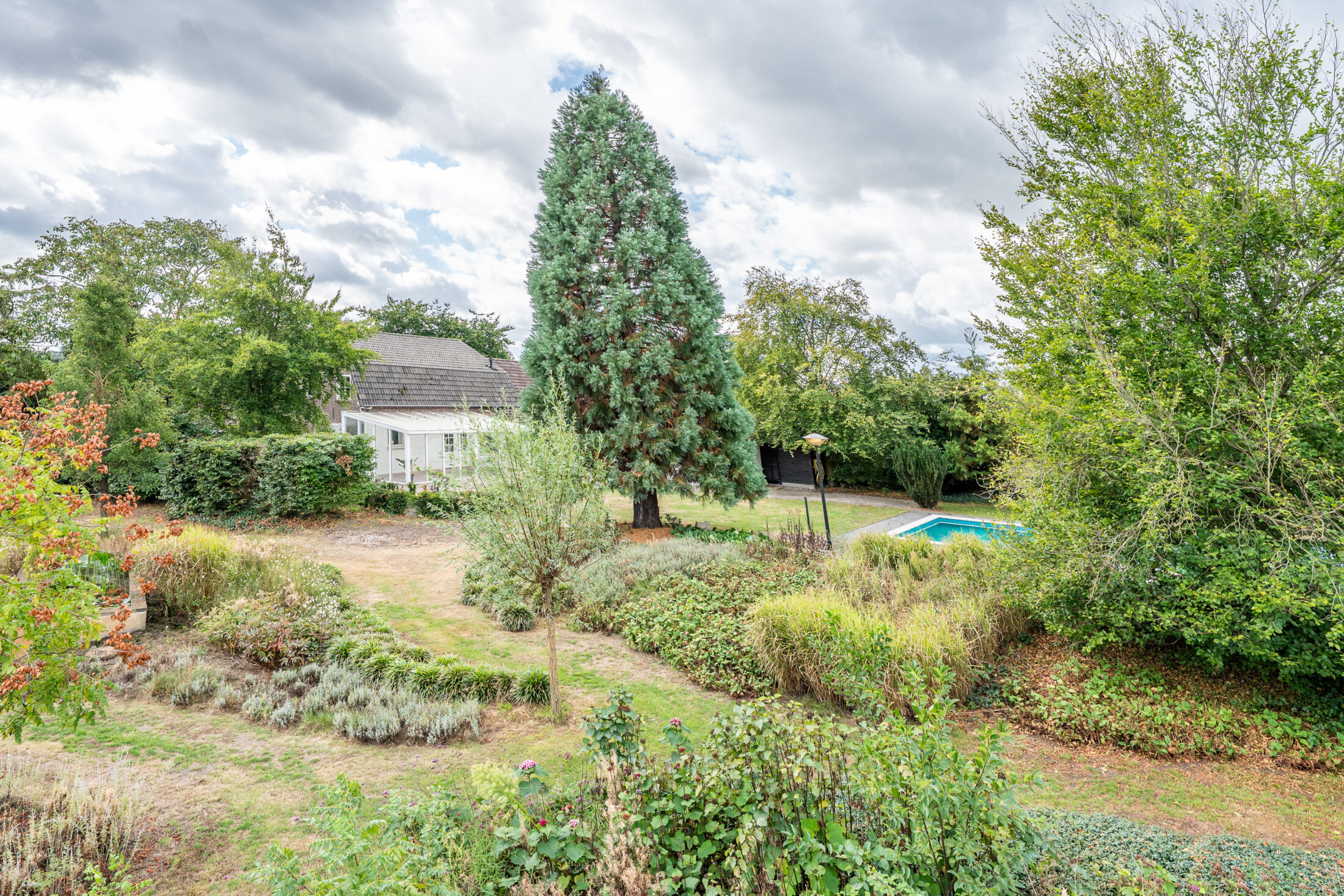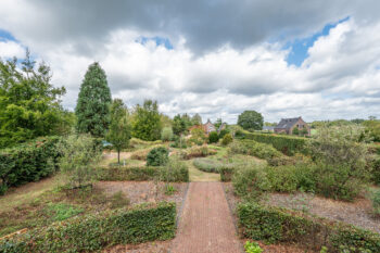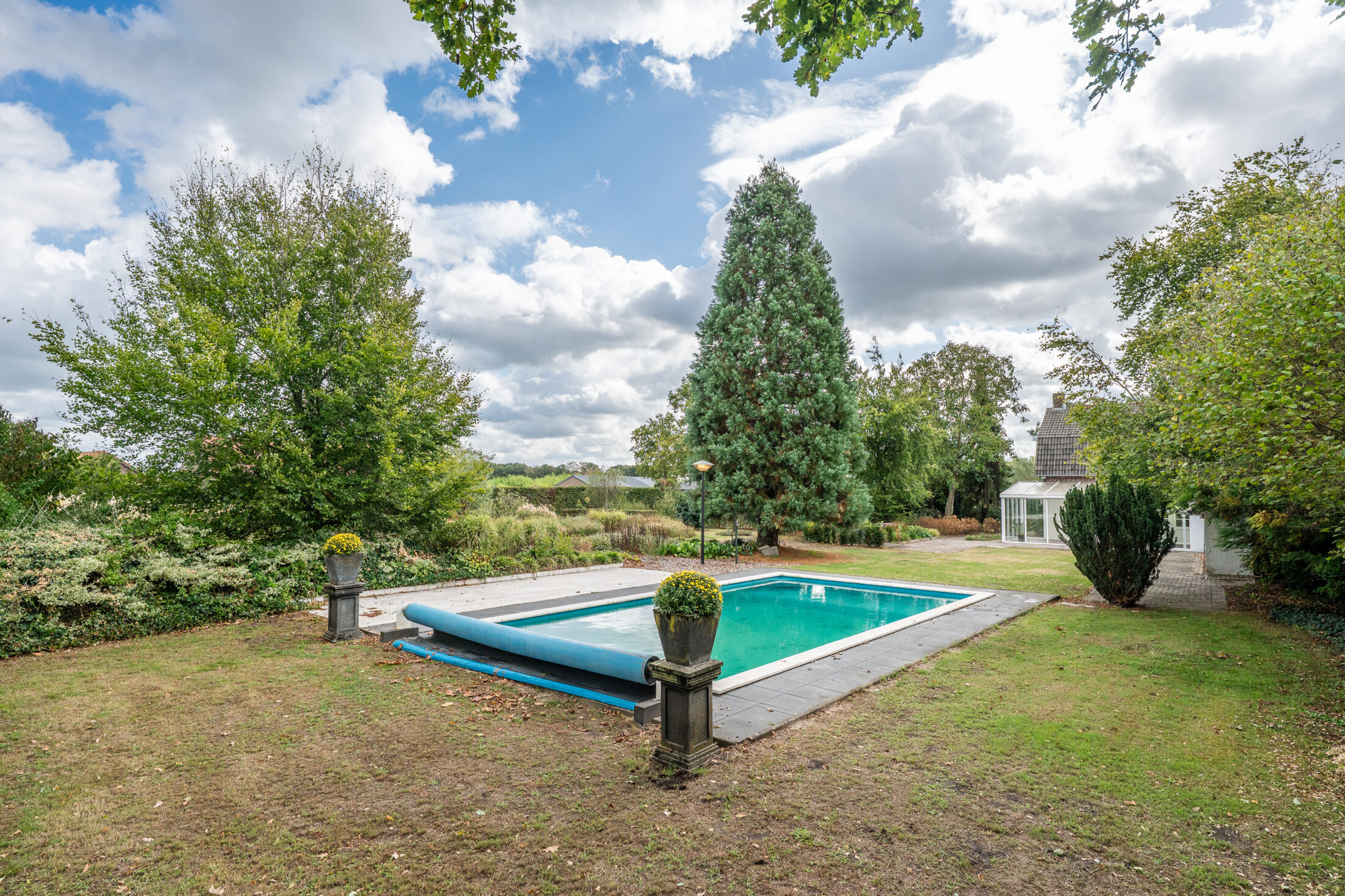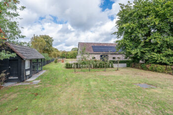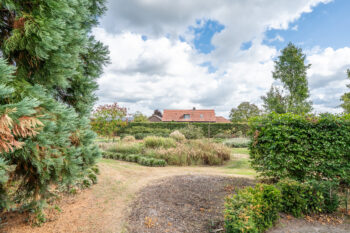 Wanneer u de auto geparkeerd heeft en rondloopt op het perceel zult u gevoelsmatig meerdere tuinen hebben. De achtertuin die bij de woning hoort heeft een groot gazon, een zwembad en een prachtige bloementuin waar u kunt wandelen. Links van de oprit ligt een groot gazon met daaraan grenzend de weide. Deze is 10.800 m2 groot. Ideaal voor degene die graag de paarden aan huis wil hebben. Achter de inpandige bergingen ligt er ook nog een groot gazon.