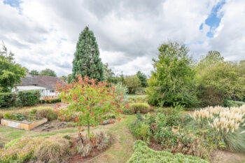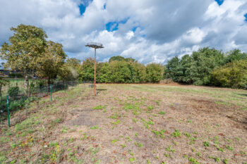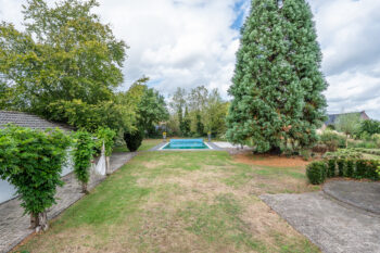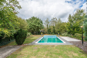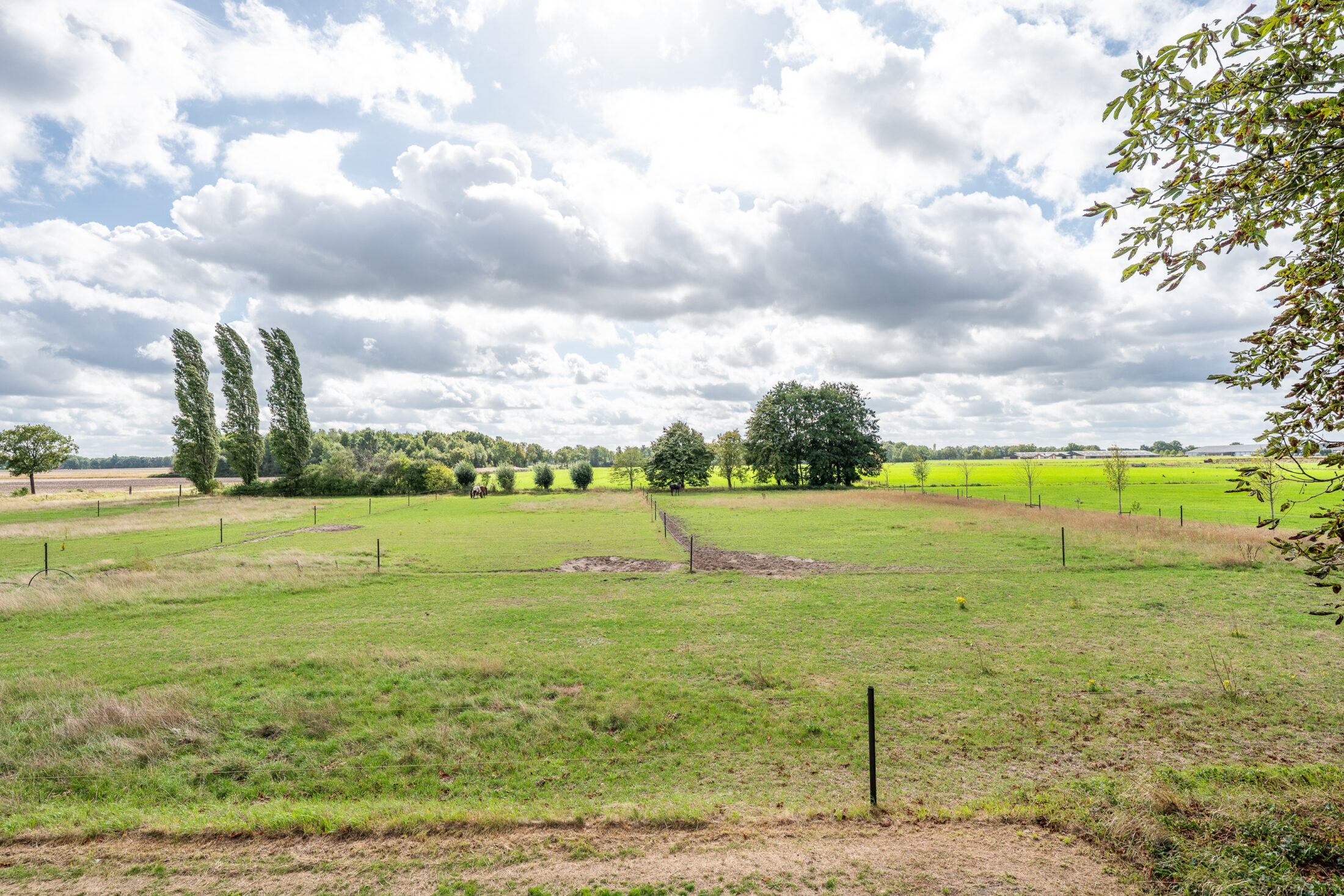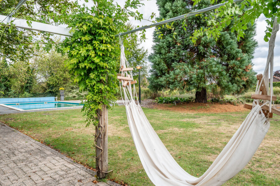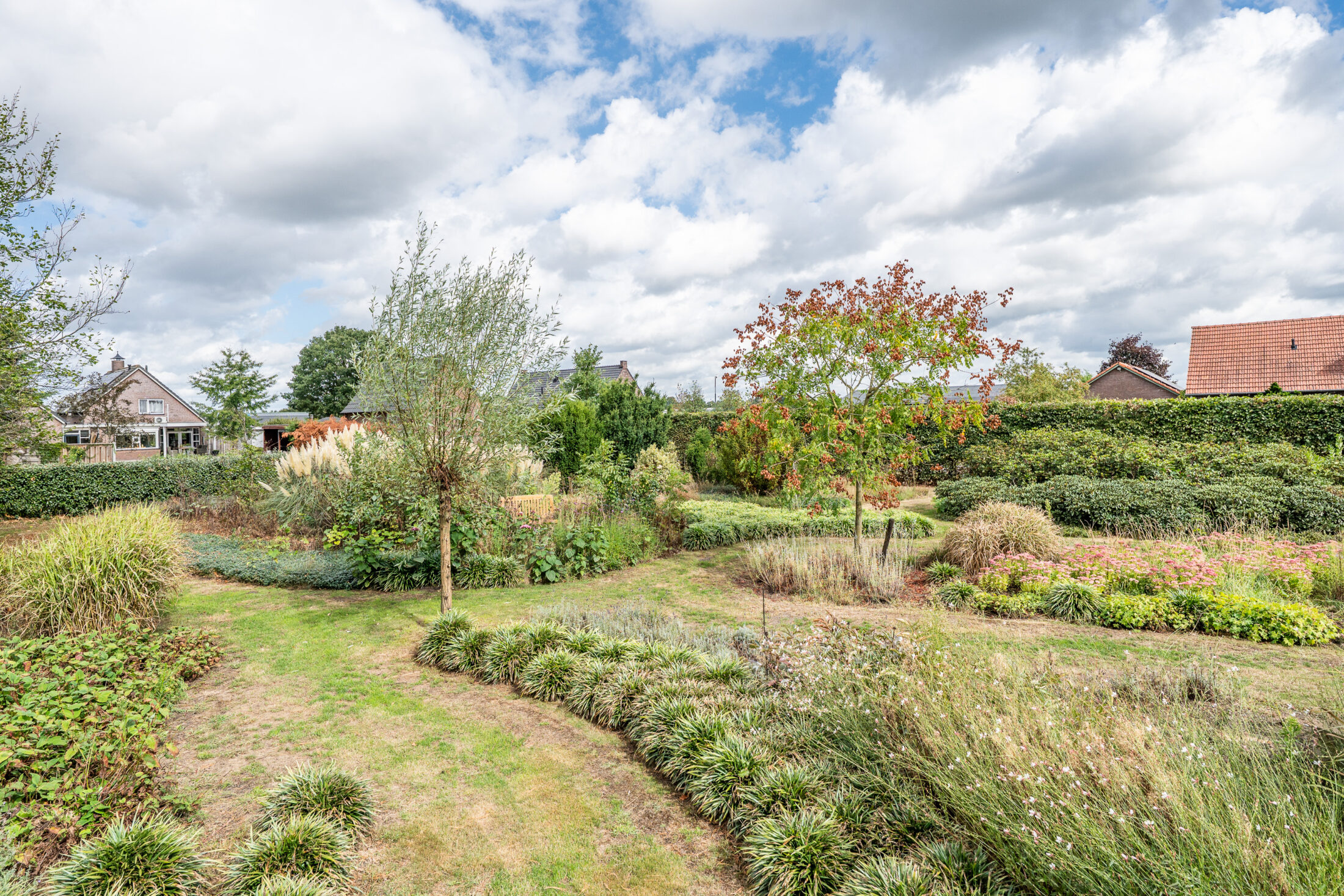 Wanneer u de auto geparkeerd heeft en rondloopt op het perceel zult u gevoelsmatig meerdere tuinen hebben. De achtertuin die bij de woning hoort heeft een groot gazon, een zwembad en een prachtige bloementuin waar u kunt wandelen. Links van de oprit ligt een groot gazon met daaraan grenzend de weide. Deze is 10.800 m2 groot. Ideaal voor degene die graag de paarden aan huis wil hebben. Achter de inpandige bergingen ligt er ook nog een groot gazon.