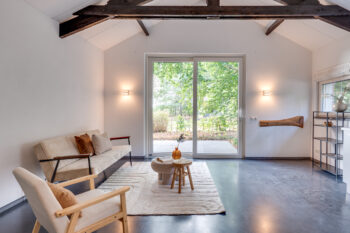 Het bijgebouw is fantastisch omgebouwd tot een magnifieke B&B Er is een vergunning aanwezig op het hele adres voor maximaal 12 personen.