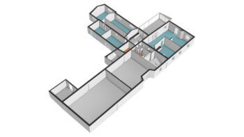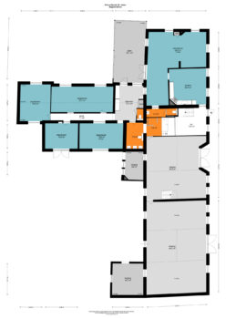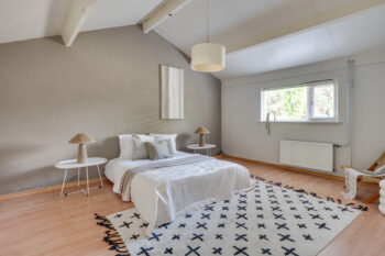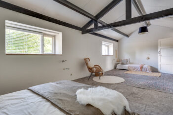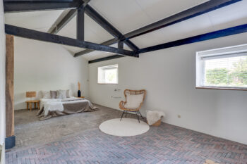 Vervolgens bereiken we de slaapvleugel, waar de vier grote slaapkamers zijn gelegen. De slaapkamers zijn respectievelijk 27 m², 19 m², 19 m² en 14 m² groot. Zeker de grootste slaapkamer leent zich ervoor om te worden gesplitst in twee kamers, waardoor u met gemak vijf ruime slaapkamers heeft.