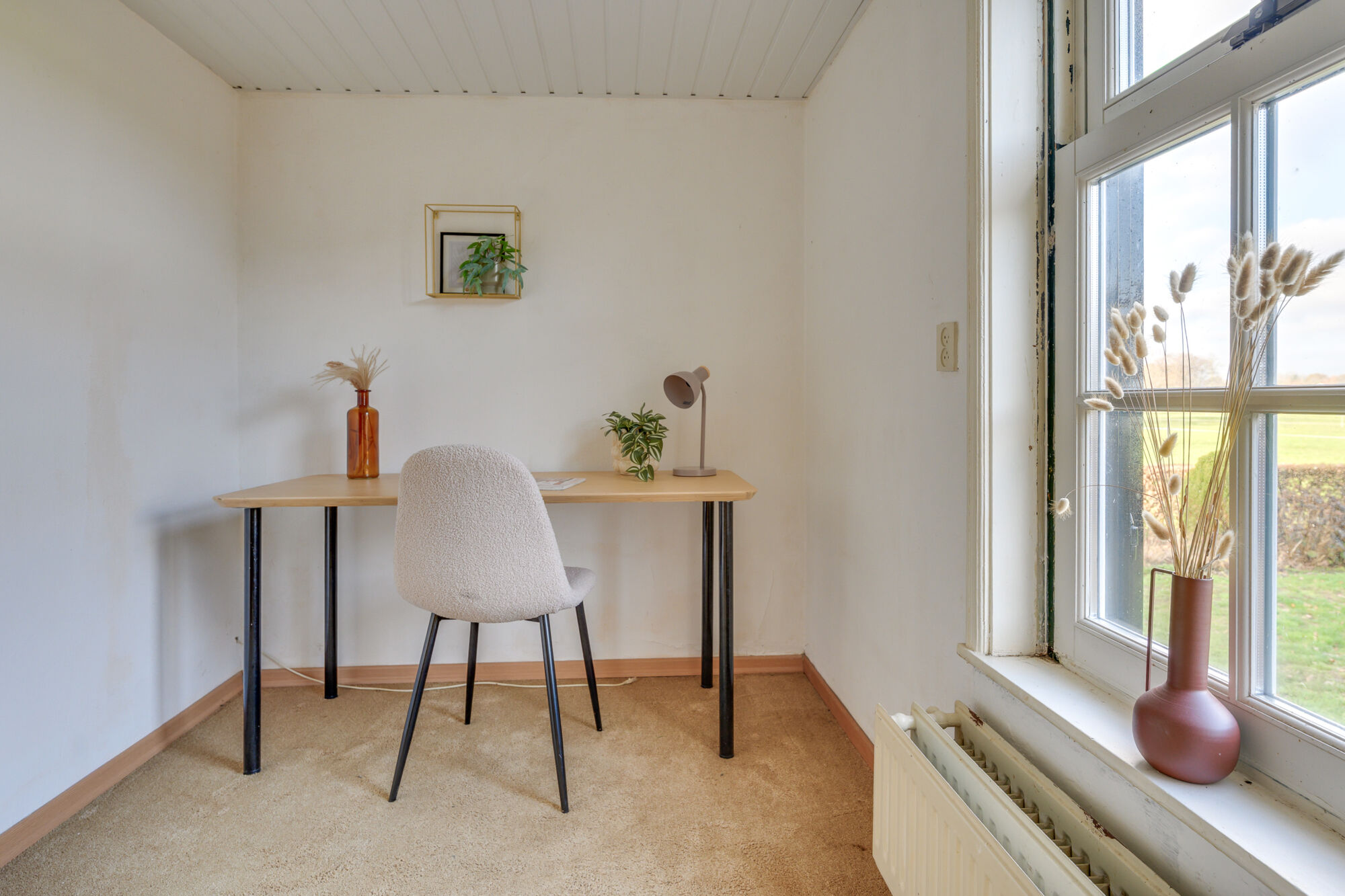 Terug naar de keuken gaat u via trapopgang naar opkamer wat een hele fijne werkkamer of speelkamer kan zijn. Niet in de laatste plaats door het fraaie, weidse uitzicht over de landerijen.