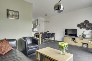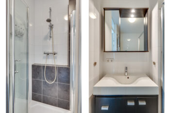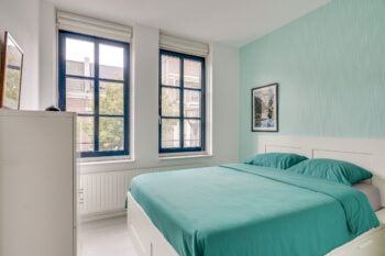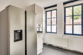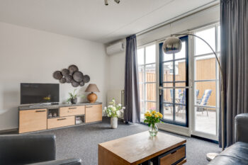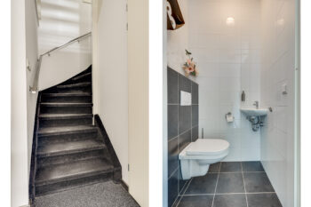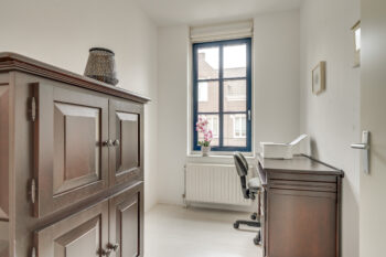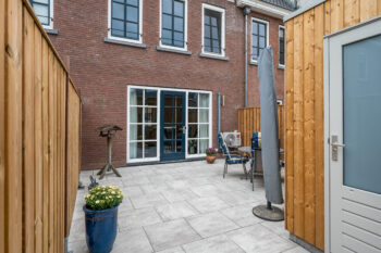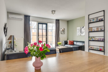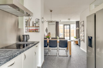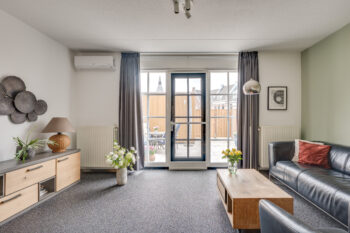 De hoge raampartijen aan de achterzijde zorgen voor veel lichtinval. De leefruimte is gesitueerd direct aan de zonnige achtertuin, welke met een loopdeur bereikbaar is. De woonkamer en keuken zijn eveneens voorzien van aan siergrindvloer, afgewerkt met rvs plinten. De airco (2022) zorgt voor extra comfort wanneer u snel even wilt koelen of verwarmen.