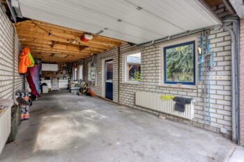 Wat deze woning écht uniek maakt is de grootte van de garage en de stijlvolle overkapping aan de achterzijde van het perceel. Met circa 34 m² aan overdekt terras heeft u hier meer dan voldoende ruimte voor verschillende tuininrichtingen. De overkapping is voorzien van een houtkachel en elektra aansluitingen. De ligging van deze garage is ook optimaal, in lijn met de afsluitbare oprit naast de woning, ideaal!