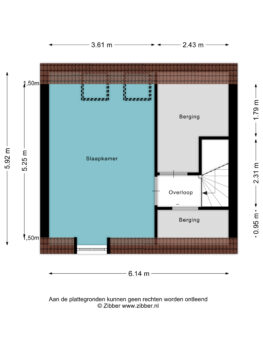 De trapopgang biedt toegang tot de overloop van deze derde verdieping. De overloop heeft een tweetal bergingsruimten en een vliering boven het trappengat. Aan de overzijde bevindt zich de mogelijkheid uw witgoed te plaatsen dankzij de aanwezige aansluitingen. Vanuit de overloop krijgt u tevens toegang tot de derde, grote slaapkamer.