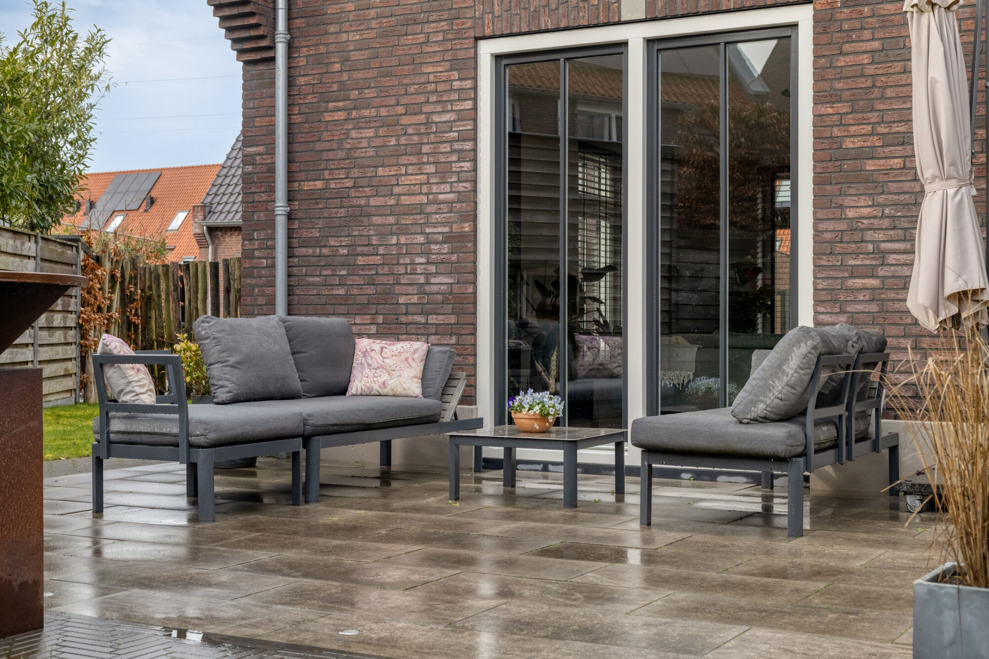 De tuin beschikt over een ruim bemeten terras met rondom ingebouwde spots, een groen gazon en volwassen beplanting wat zorgt voor een sfeervolle en beschutte omgeving. Via beide zijden is de tuin bereikbaar middels een toegangspoort. Door de positie van de tuin zit u heerlijk beschut en door de ligging op het zonnige zuiden, kunt u de gehele dag van de zon genieten! De aanwezige jacuzzi maakt het geheel compleet en biedt heerlijke ontspanning, het hele jaar door.