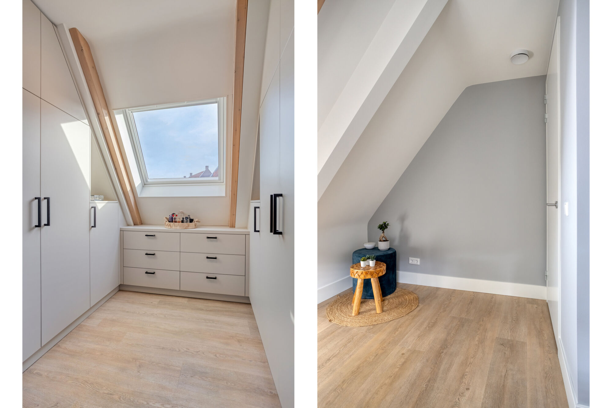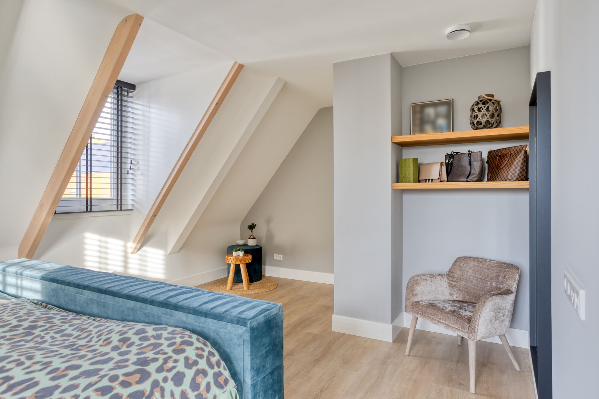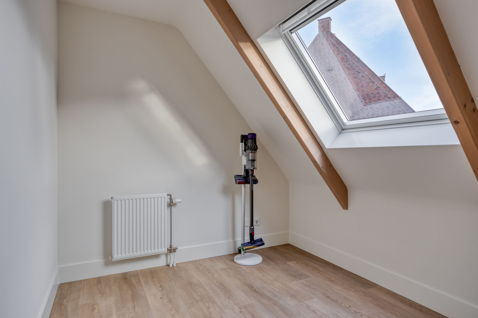 Uiteraard is ook op deze verdieping het afwerkingsniveau hoog: strakke stucwerk wanden, hoge plinten, een eiken PVC-vloer welke in 2024 recent is gelegd.