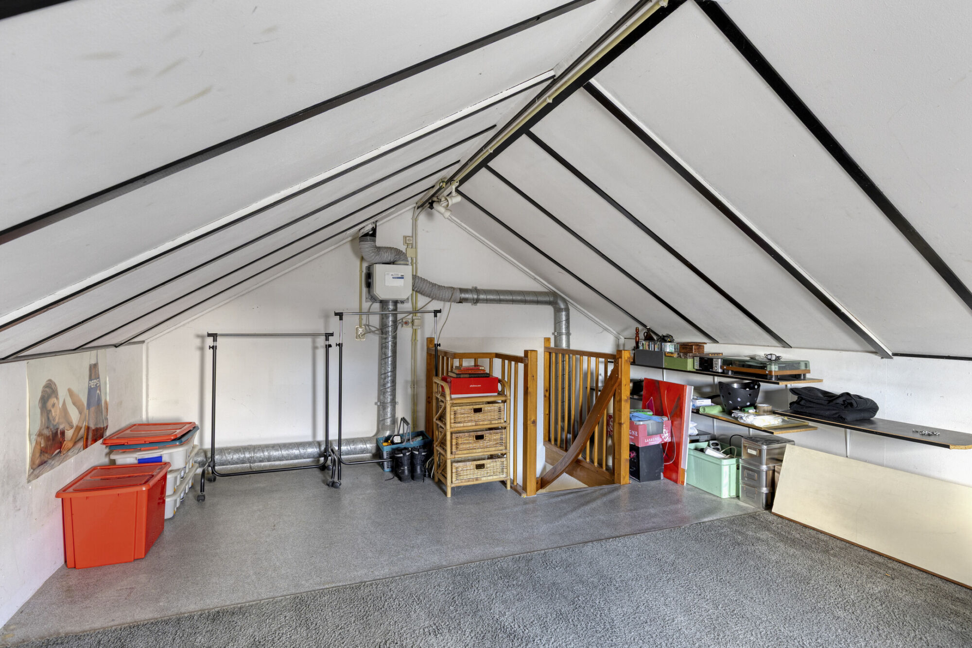 Via een vaste trap is de tweede verdieping bereikbaar. Hier bevindt zich een prettige zolderverdieping met volop mogelijkheden. Hoewel deze ruimte momenteel niet is meegerekend in het woonoppervlak, biedt zij in potentie — bijvoorbeeld na het plaatsen van een dakkapel — de mogelijkheid tot het realiseren van extra (slaap-)kamers.