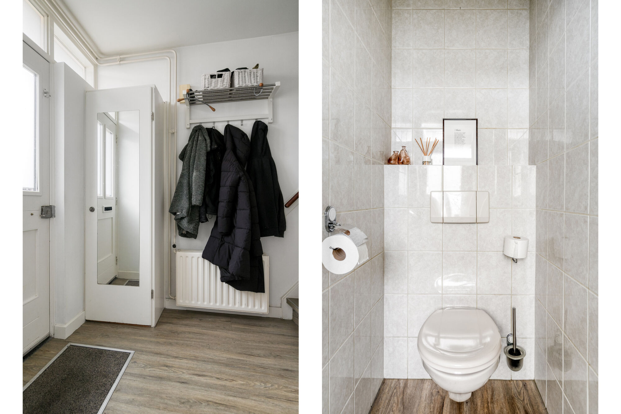 Via de verzorgde voortuin bereiken we de overdekte entree van deze woning, waaraan gelegen: de meterkast, toiletruimte voorzien van strak tegelwerk en een wandcloset, trapopgang en toegang tot de woonkamer.
