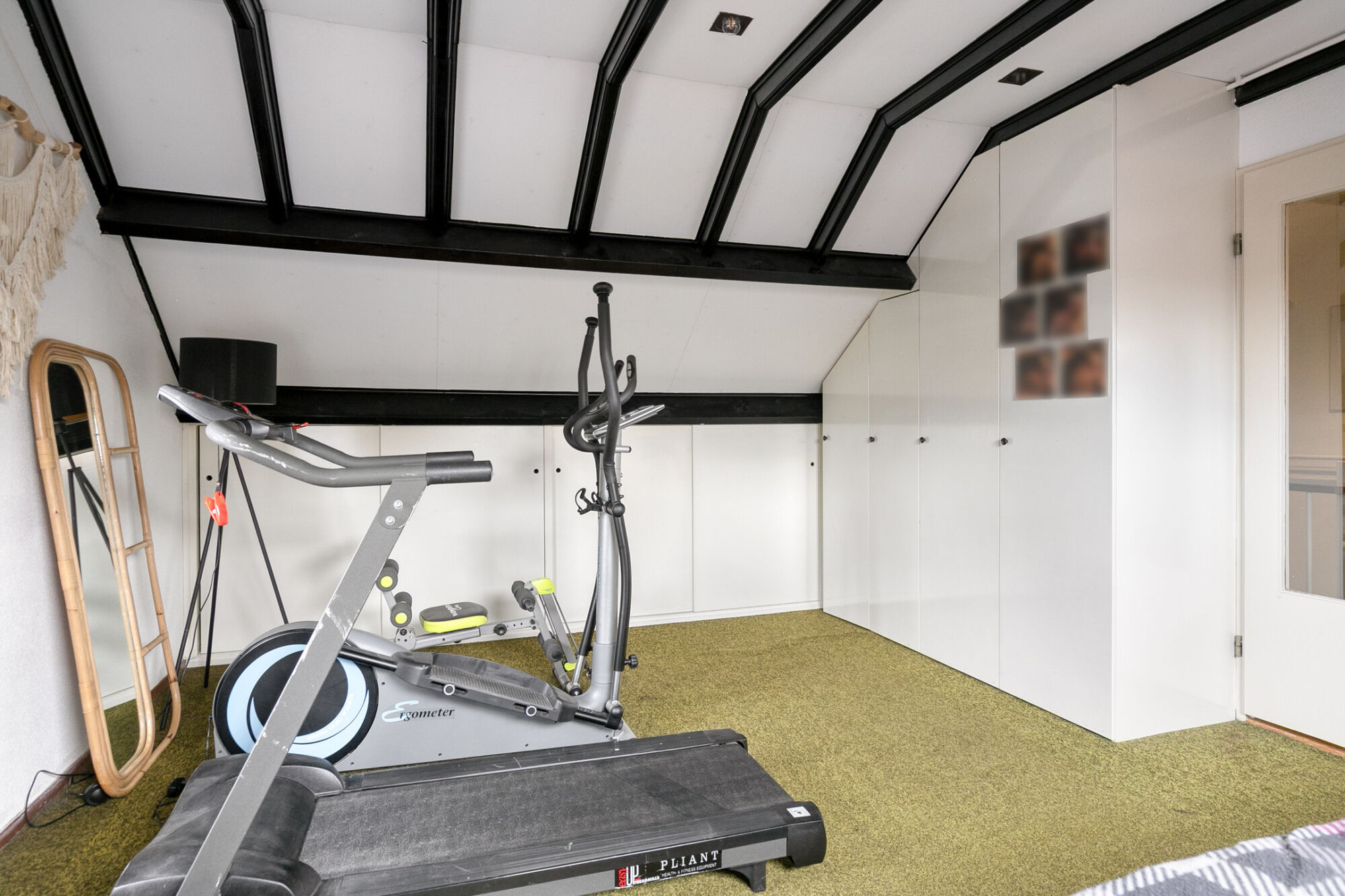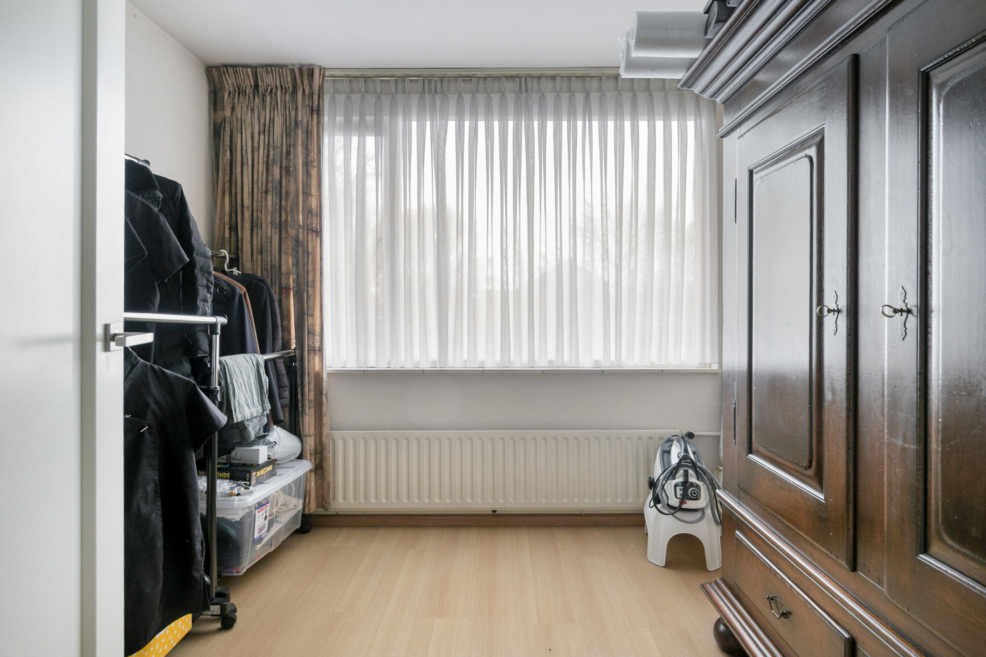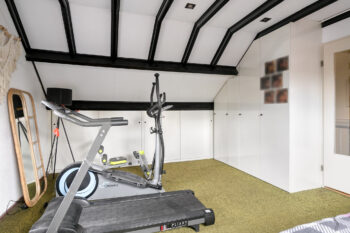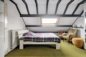 De vierde slaapkamer is over de gehele diepte van de woning uitgevoerd en voorzien van een groot dakraam ten behoeve van natuurlijk lichtinval en ventilatie. Deze slaapkamer is wederom perfect te gebruiken en in te delen vanwege zijn aanwezige oppervlakte. Daarbij beschikt deze verdieping ook over op maat gemaakte hoge MDF-kasten voor extra bergruimte.