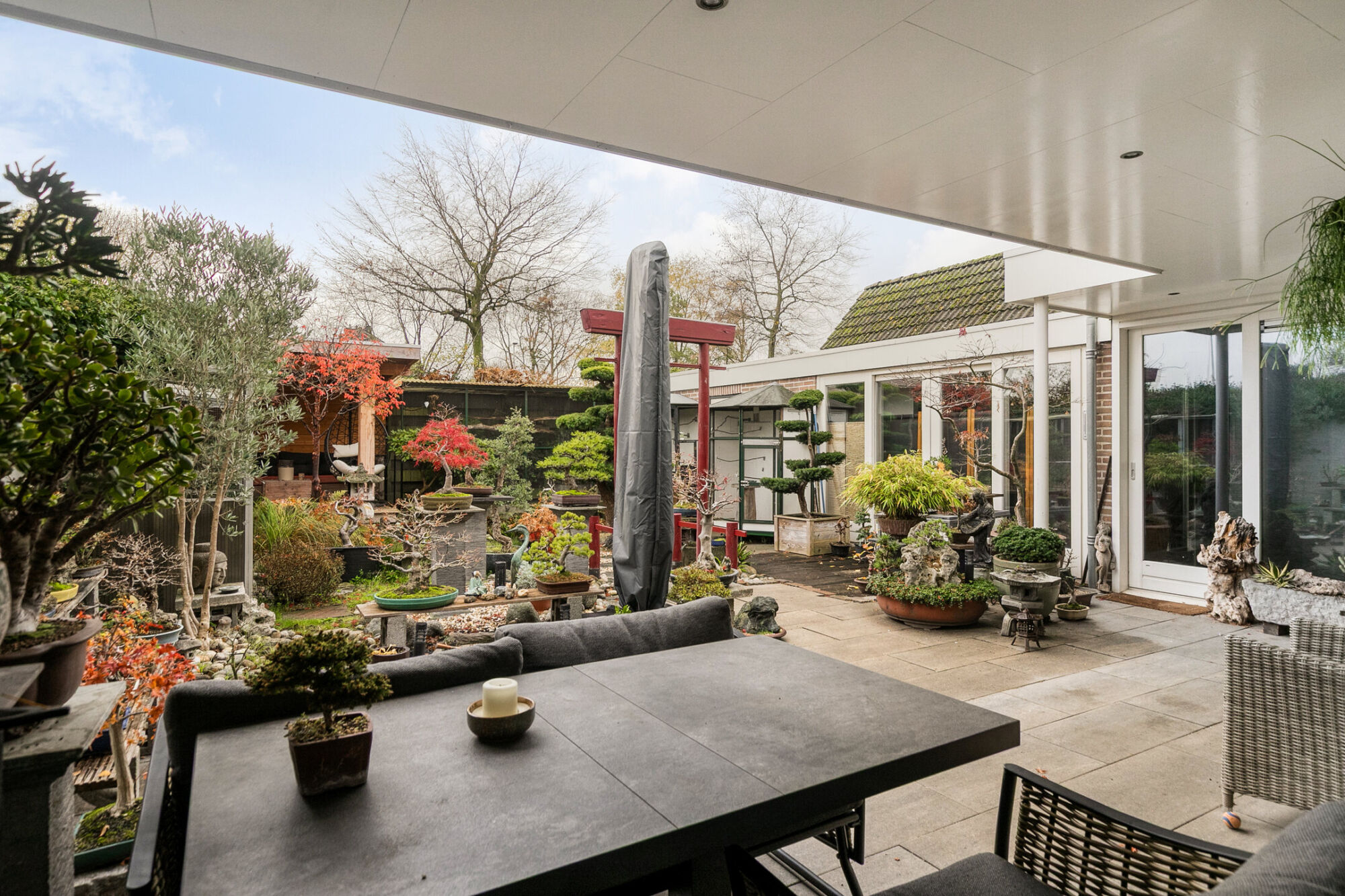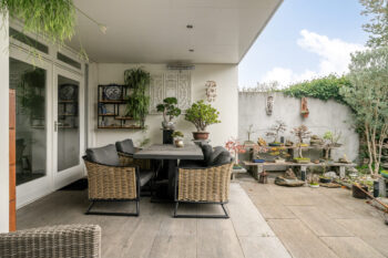 – Privacy biedende, zonnige achtertuin op het Zuiden gelegen met twee grote terrasoverkappingen;