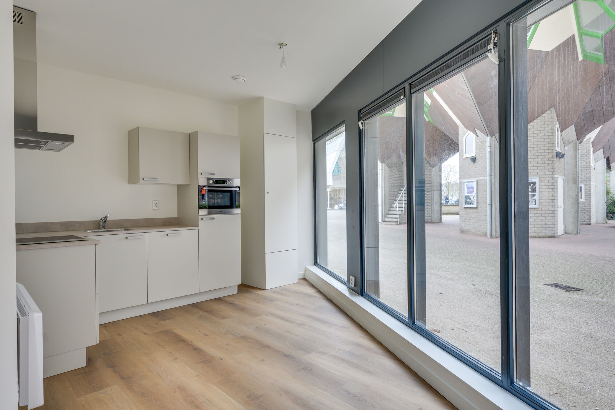 De ligging aan de Markt is gunstig ten opzichte van het N.S.-treinstation, supermarkten, speciaalzaken en horecagelegenheden waardoor het optimaal genieten is. Daarbij is deze uitzonderlijke woning gelegen tegenover het ‘’Piet Blomplein” met prachtig uitzicht op de specifieke en karakteristieke Kubuswoningen!