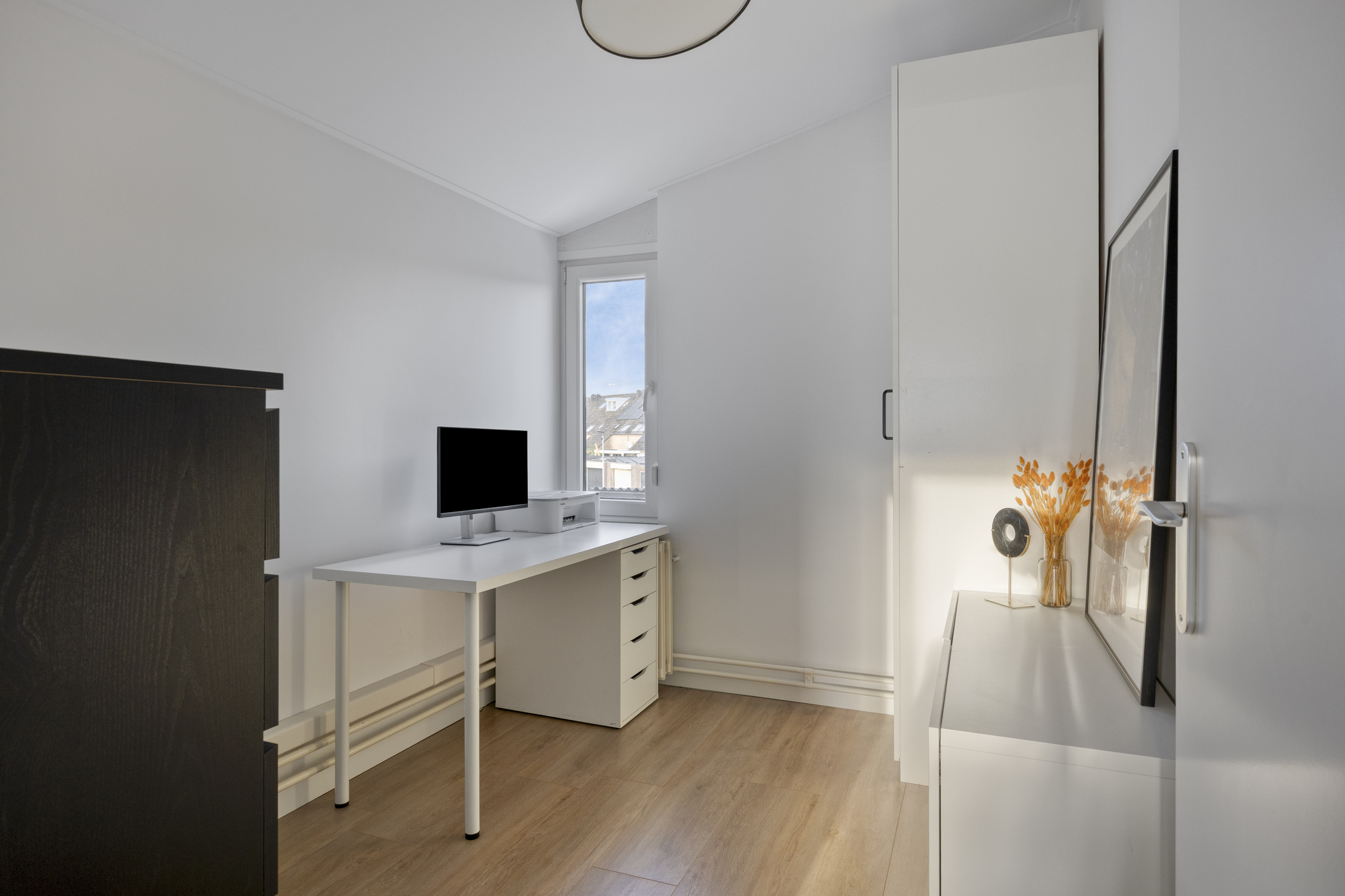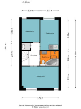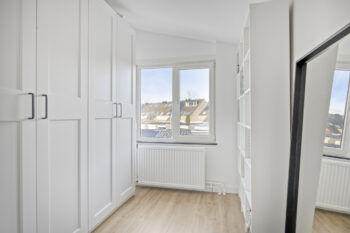 Aan de voorzijde van deze woning is de grootste slaapkamer gelegen. Deze slaapkamer is over de gehele breedte gesitueerd, voorzien van nette vloerbekleding, wand- en plafondafwerking welke over de gehele verdieping wordt doorgetrokken! Aan de achterzijde bevindt zich aan de rechterzijde de tweede slaapkamer, deze slaapkamer is wederom ruim van opzet. Slaapkamer drie bevindt zich aan de linker-/achterzijde.