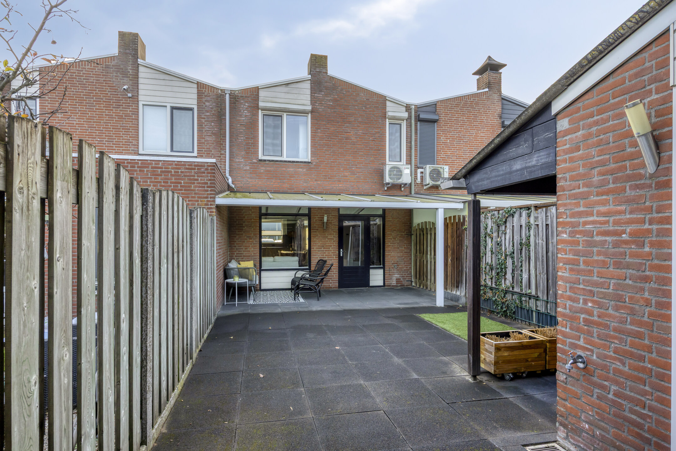 Op een centrale woonlocatie met vrije parkeergelegenheid aan een parkeerhofje voor de woning bevindt zich deze leuke tussenwoning, voorzien van drie grote slaapkamers, een ruime woonkamer, fijne tuinoverkapping en een eigen parkeerplaats met carport naast een vrijstaande bergingsruimte.