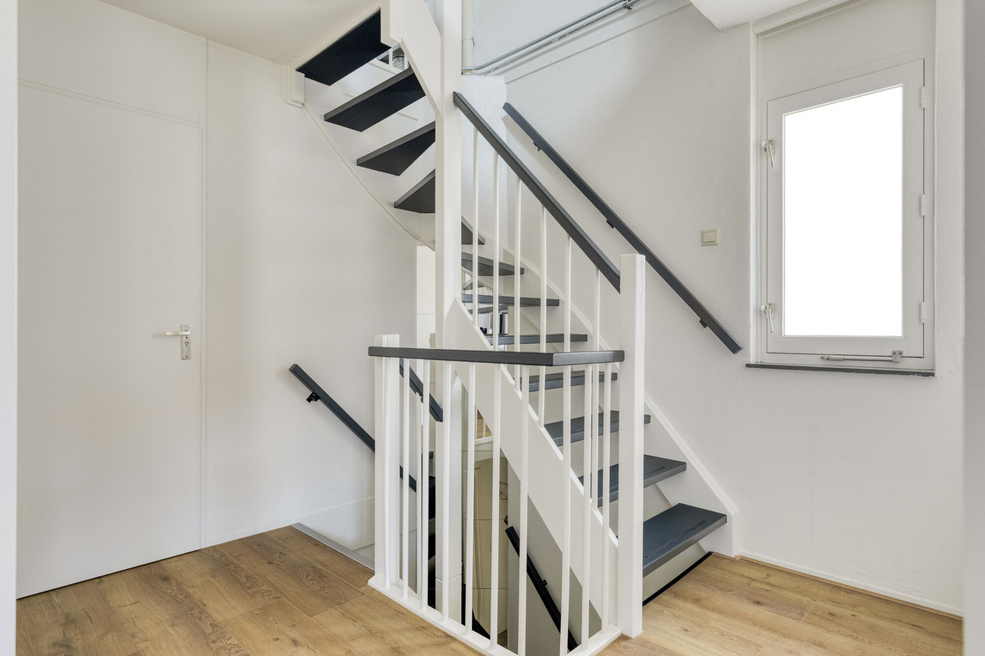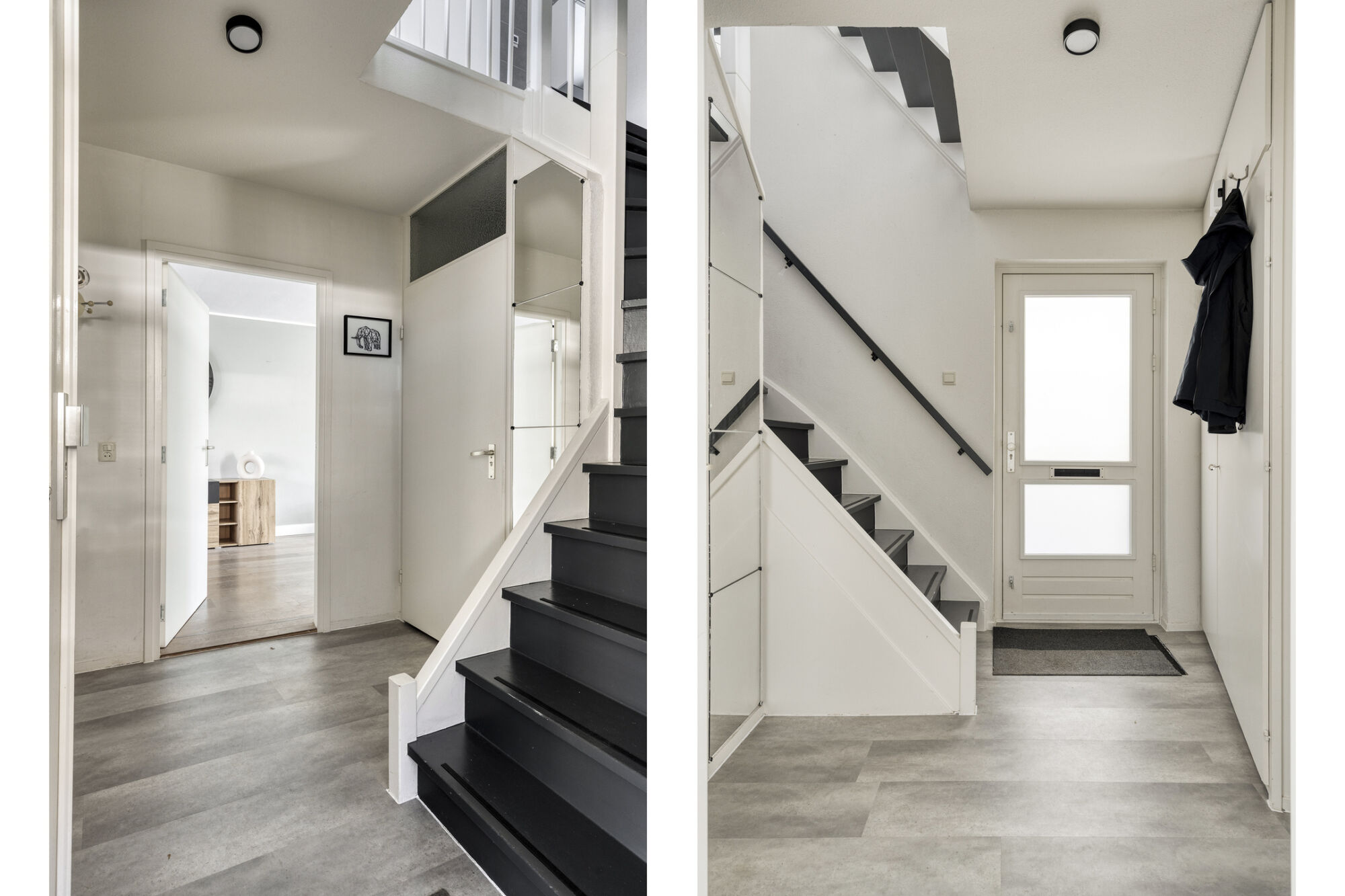U betreedt de woning via een zijentree in de hal. In de hal bevinden zich de trapopgang naar de 1e verdieping, de vernieuwde meterkast en het toilet met wandcloset en fonteintje. Vanuit de hal kunt u verder naar de woonkamer en de keuken.