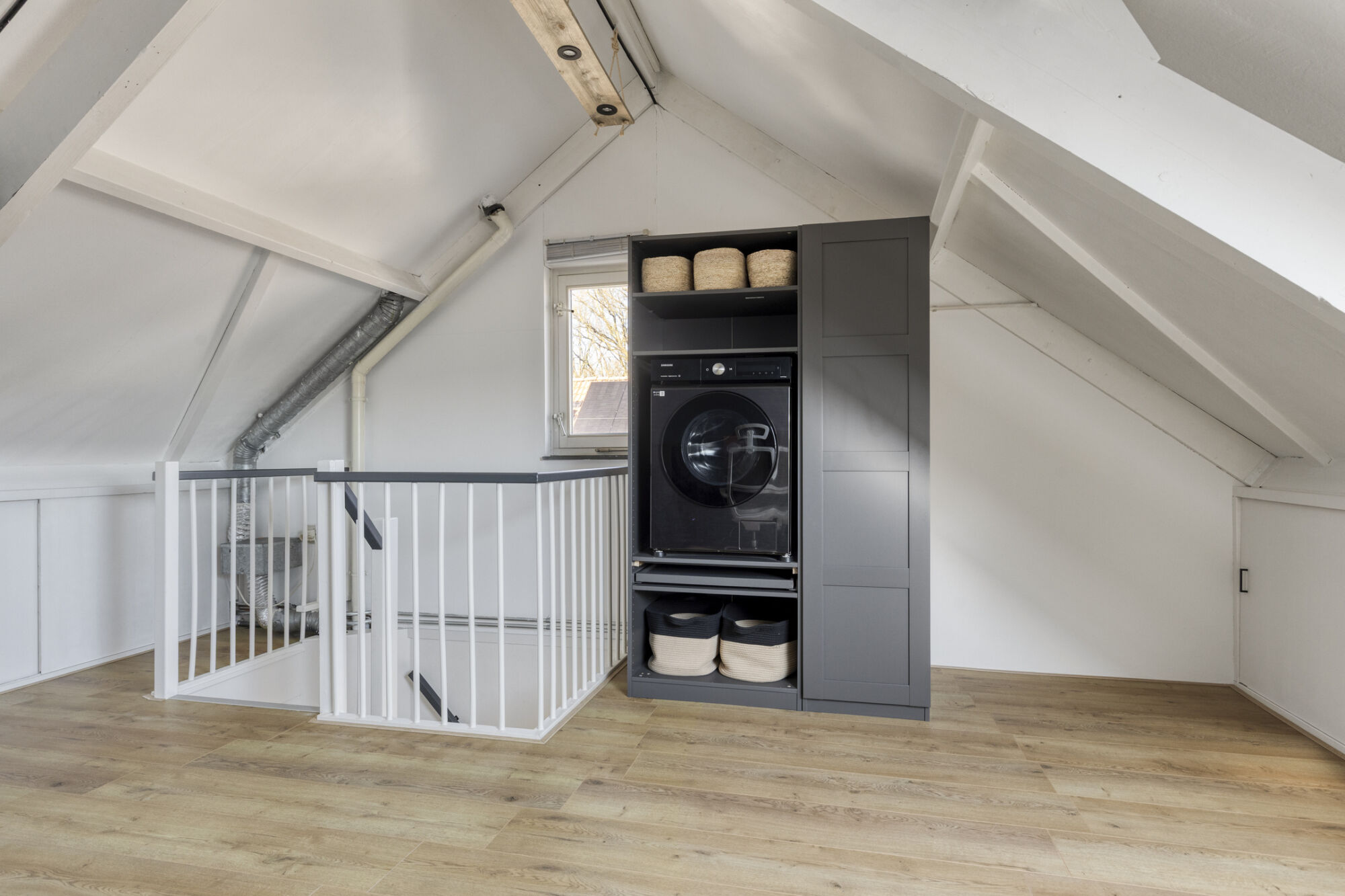 Vervolgens bereikt u via een vaste trap de tweede verdieping. Deze prachtige ruimte kan eventueel worden omgebouwd tot een vierde slaapkamer. Daarnaast is hier ook ruimte voor het plaatsen van een wasmachine en droger.