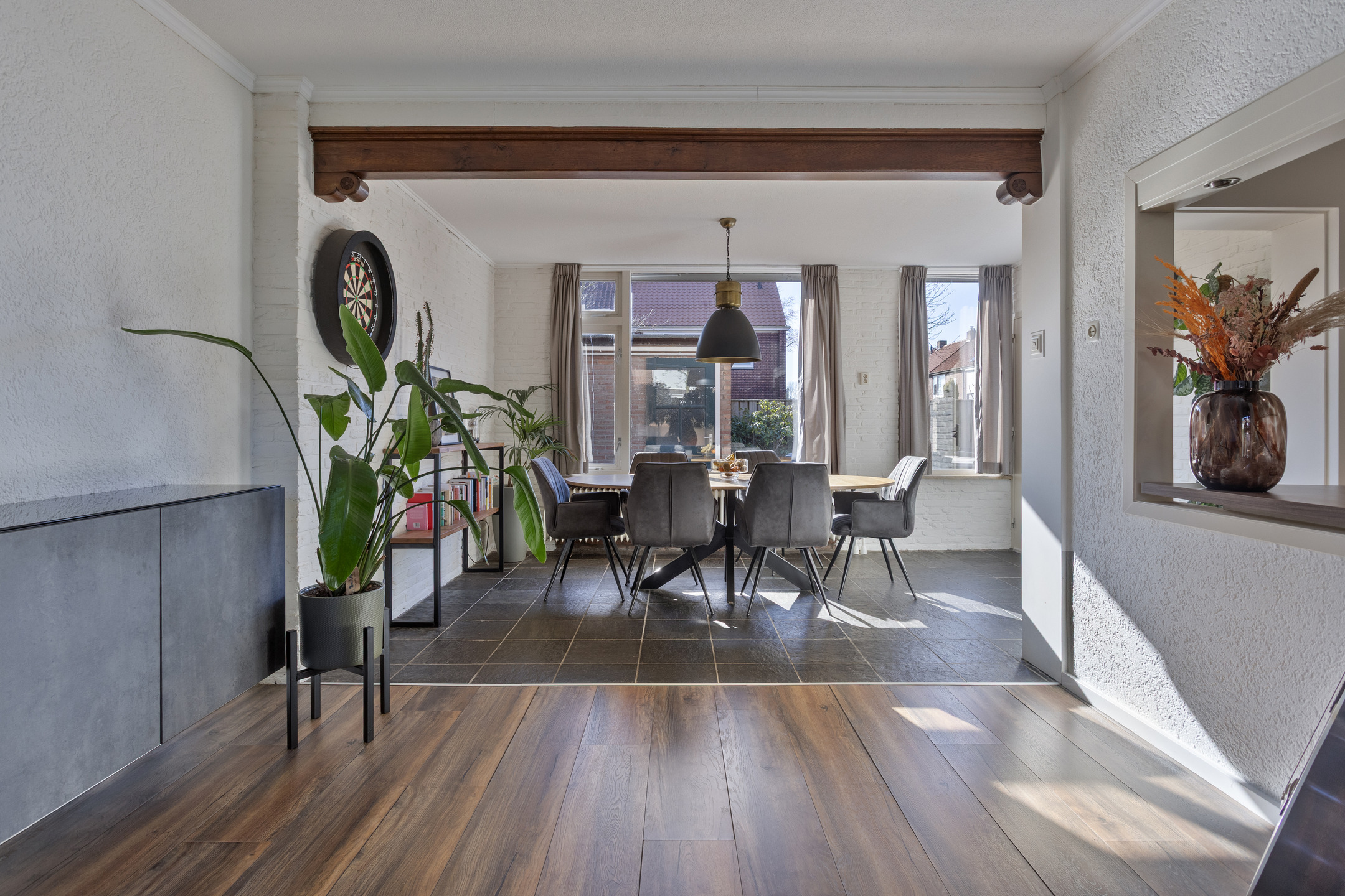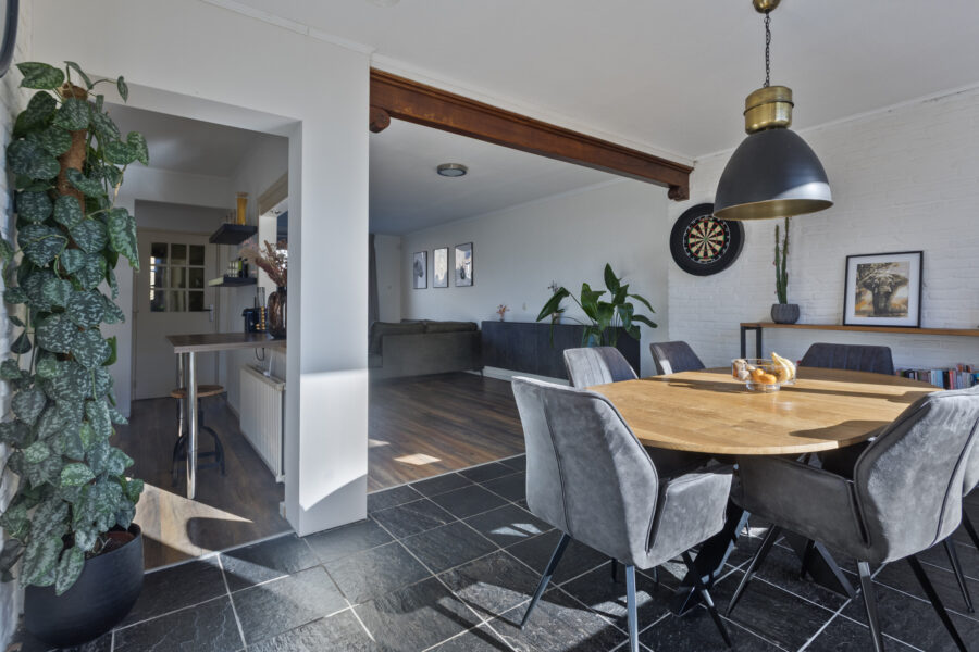 Prachtig ruime en lichte woonkamer, doch uitermate rustig gelegen met uitzicht over het groen van het woonhof aan de Palmhoutstraat. Deze woonkamer is ruim vanwege de grote uitbouw aan de achterzijde van de woning waar zich de dinerruimte bevindt. Aan de voorzijde van de woonkamer heeft u de perfecte gelegenheid een sfeervolle zithoek in te richten. De woonkamer staat tevens in open verbinding met de keuken.