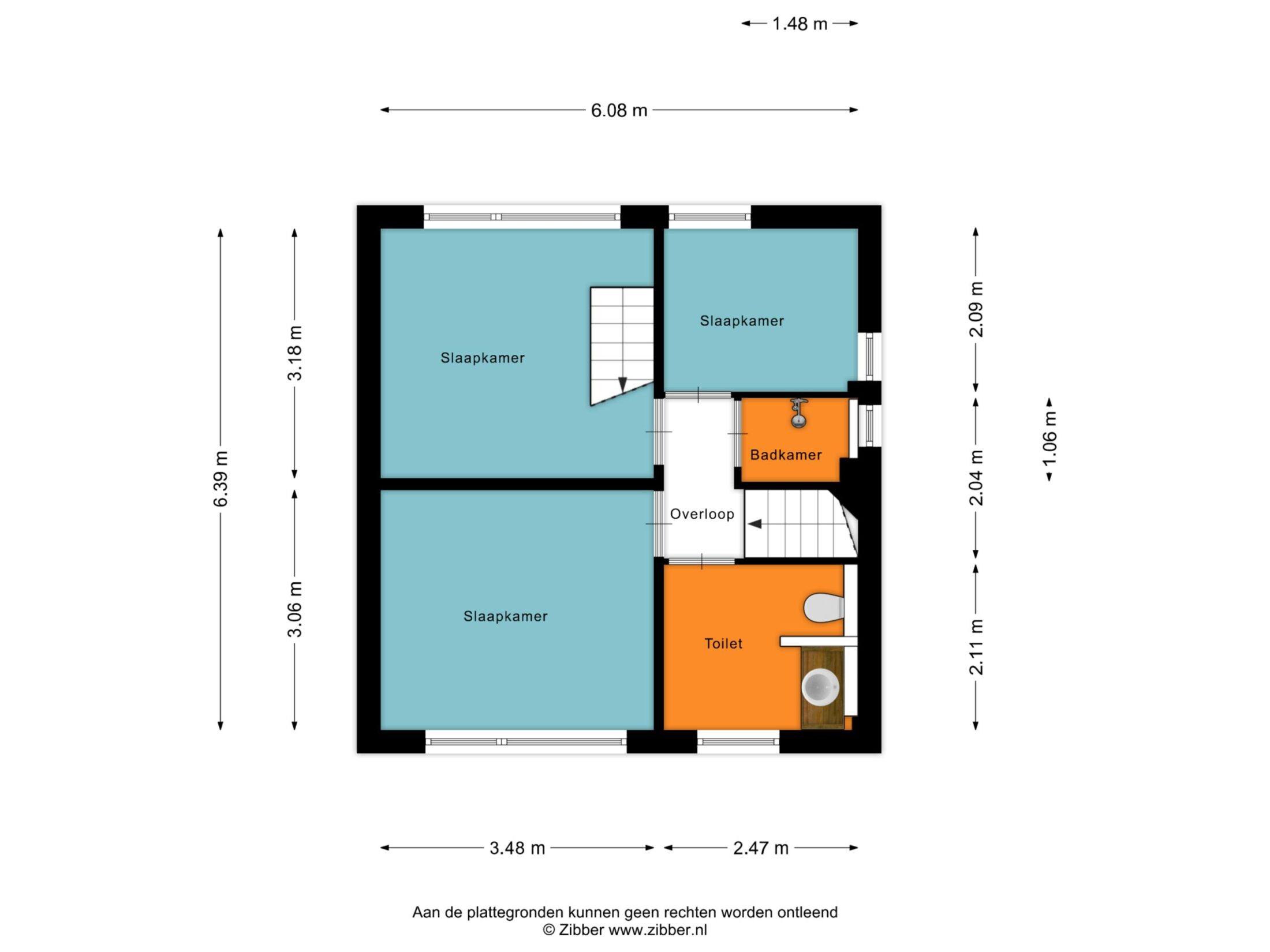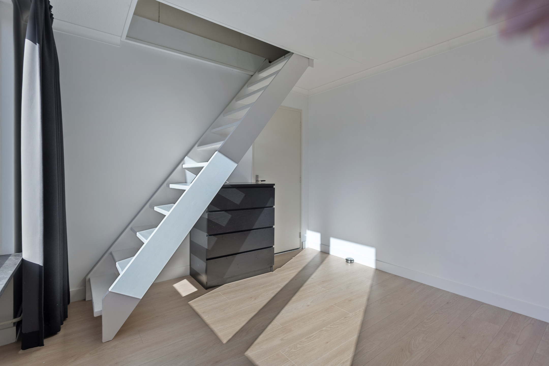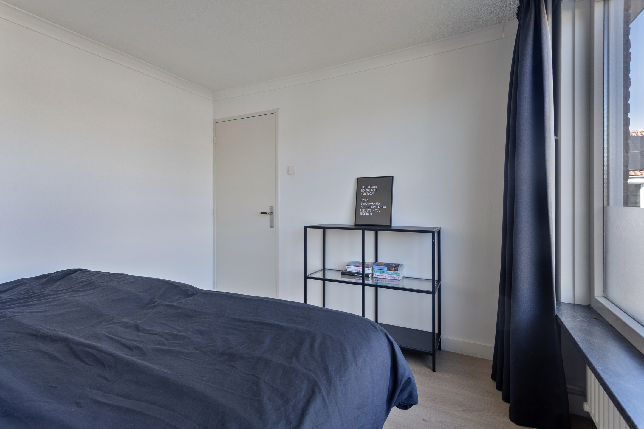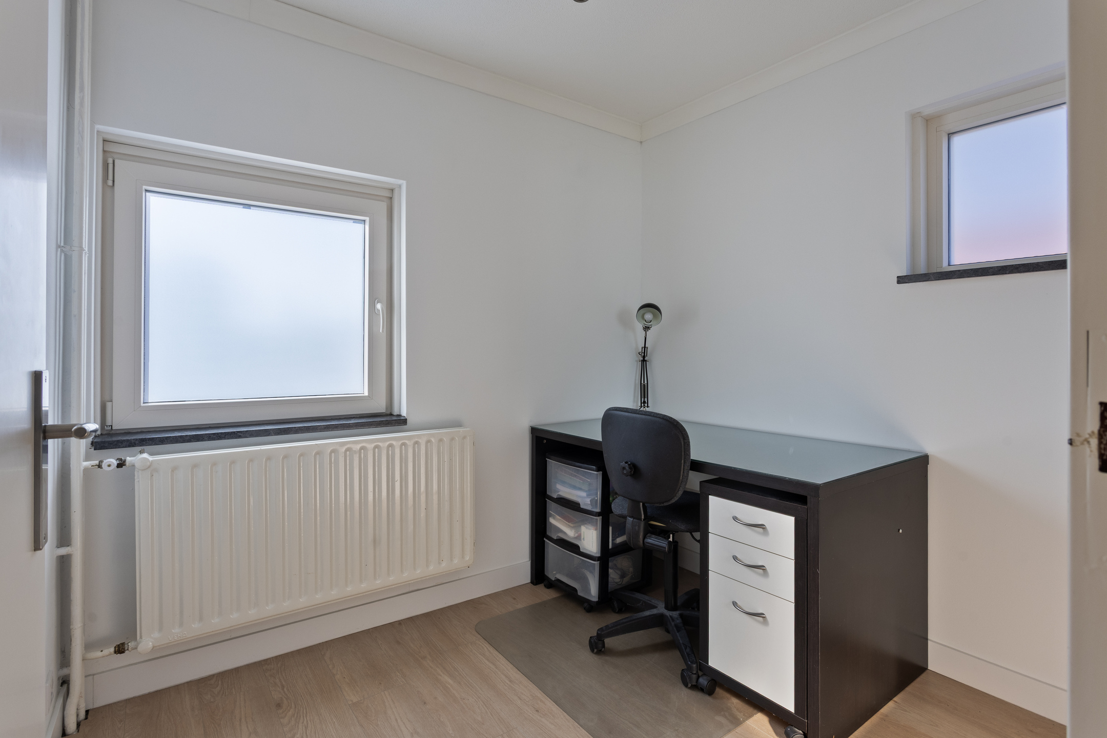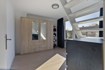 De derde slaapkamer bevindt zich aan de rechter-/achterzijde. Deze slaapkamer is circa 5 m² groot en derhalve perfect te gebruiken als thuiswerkplek, hobbyruimte of kinderkamer.