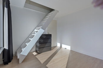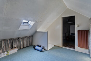 Via de vaste trap op de eerste verdieping bereiken we de overloop van de tweede verdieping. Deze overloop is ideaal te gebruiken als bergingsruimte of eventueel als slaapkamer te gebruiken indien dat gewenst is!
