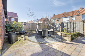 Vanuit de uitbouw krijgen we toegang tot de grote en fijne achtertuin. Deze achtertuin is vanwege de ligging van de woning op een hoek ook aan de rechterzijde ruim aanwezig, uniek in deze wijk! De tuin is prachtig en onderhoudsvriendelijk aangelegd, voorzien van diverse terrassen, plantenborders en een nette uitstraling. Naast zijn rustige ligging in de fijne woonstraat is de achtertuin voorzien van veel zonlicht dankzij de ligging op het zuidwesten.
