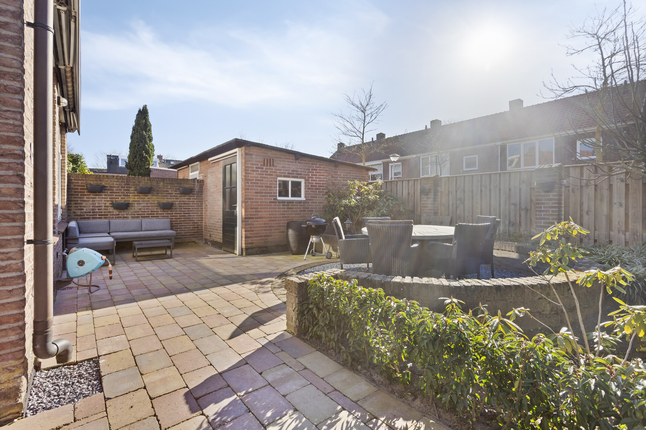 Rondom de woning heeft u de gelegenheid de achtertuin middels een vernieuwde poort te bereiken. Aan de achterzijde van de tuin bevindt zich een vrijstaande berging, voorzien van elektra en perfect om uw hobby- of tuinmaterialen op te bergen.