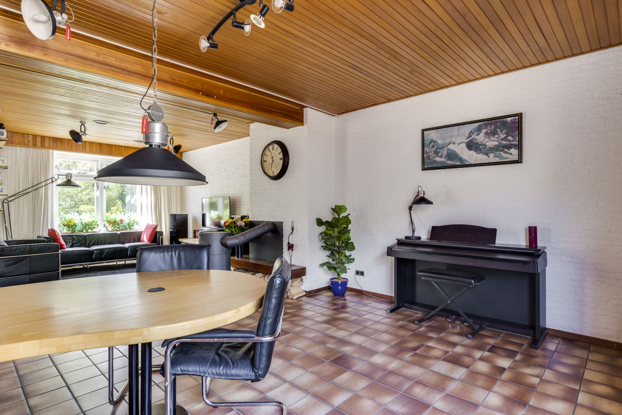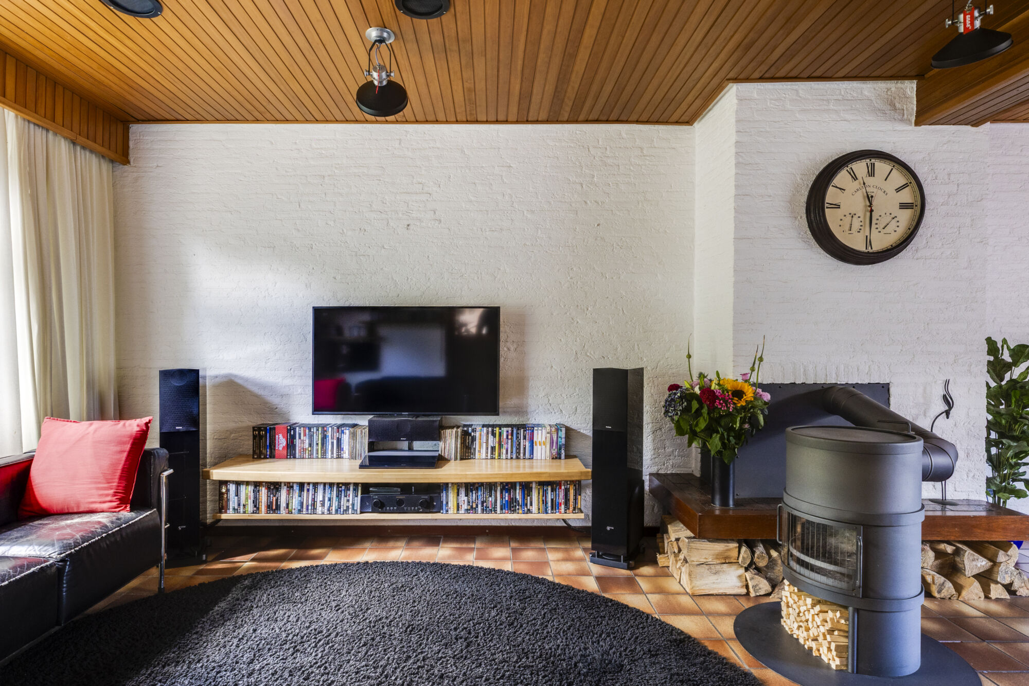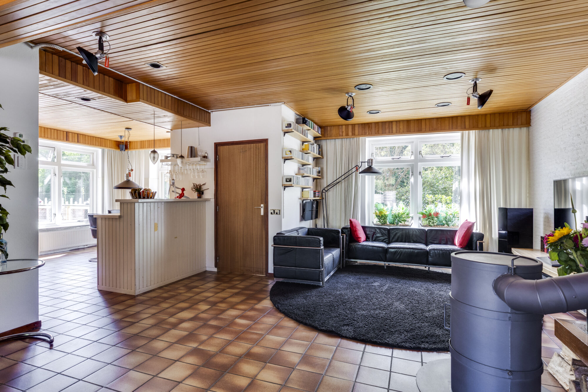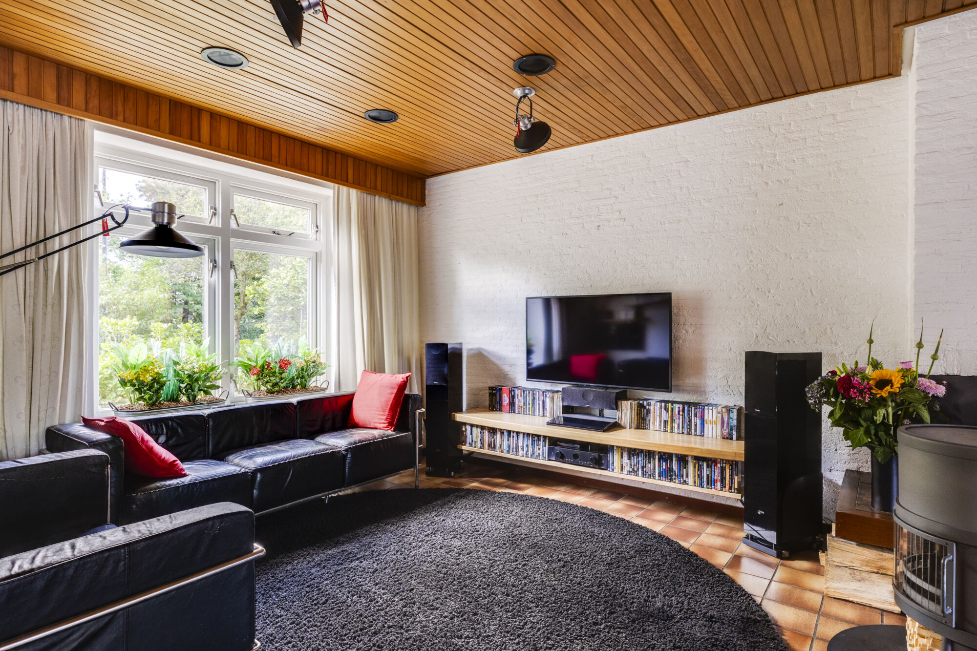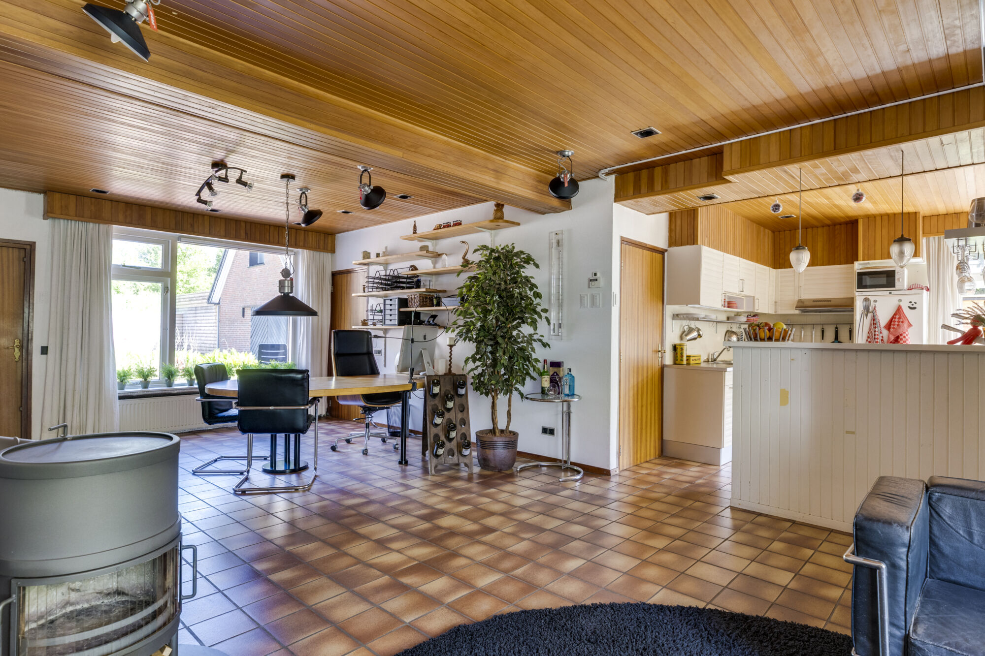 Wat een ruimte en licht! De grote ramen aan de voor- en achterzijde zorgen voor een mooi uitzicht en veel lichtinval. Een haardkachel zorgt voor nog meer sfeer. Deze blijft niet achter, maar de ombouw/schouw blijft waardoor je er zo weer een openhaard van maakt. De kamer is meer dan groot genoeg voor een ruime opstelling van een zit- en eethoek. Zowel de ramen aan de voor- als zijkant van de woning zijn voorzien van zonwering.