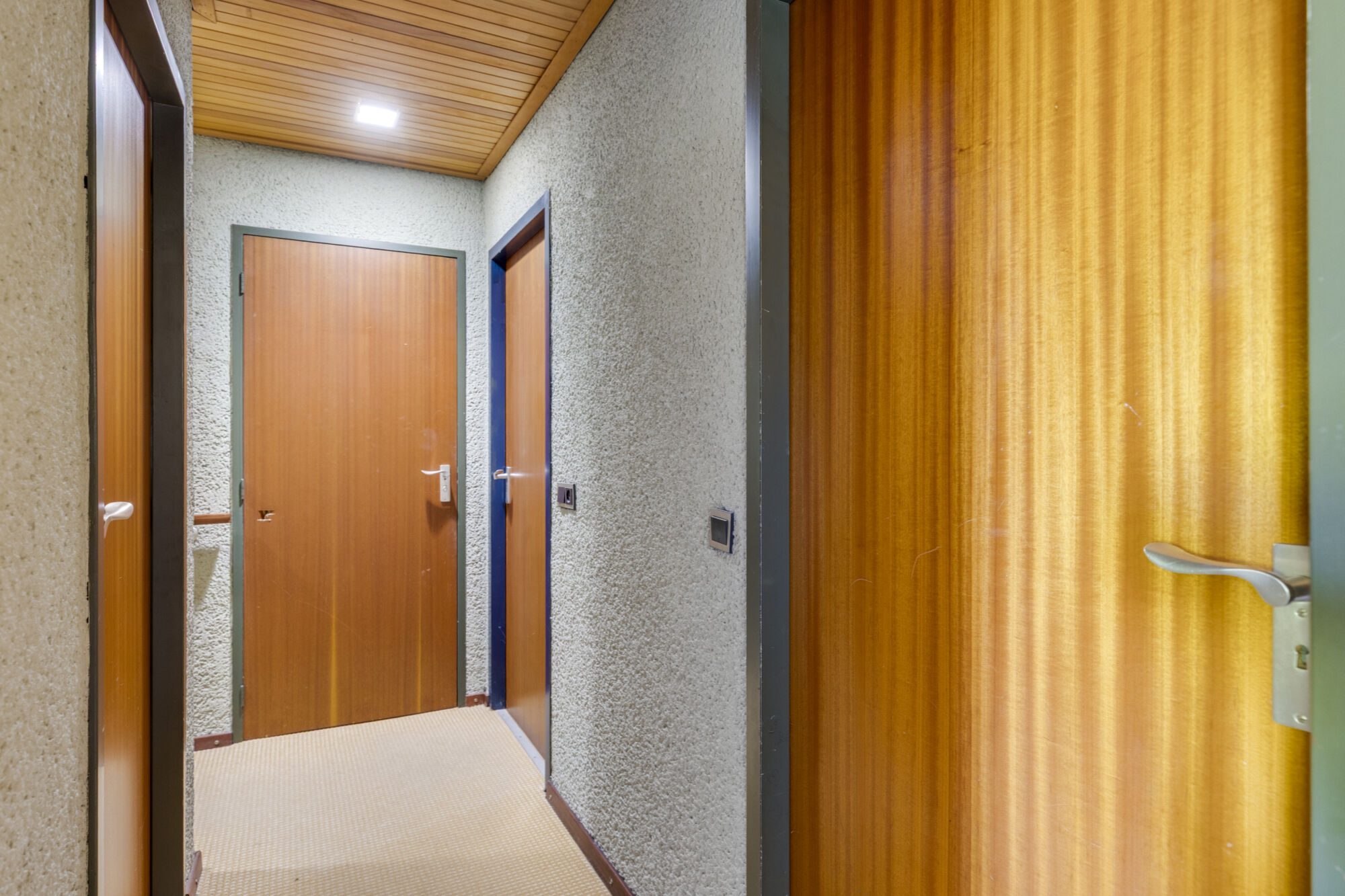 De woning heeft een riante voortuin waardoor je nóg meer privacy hebt. Een brede oprit biedt genoeg ruimte voor twee auto’s. Vanwege de brede inrit kun je zelfs je auto achterom rijden. De woning is destijds degelijk gebouwd met goede materialen; zo zijn merbau kozijnen toegepast. De hal heeft een garderobe en leidt je naar de woonkamer met open keuken.
