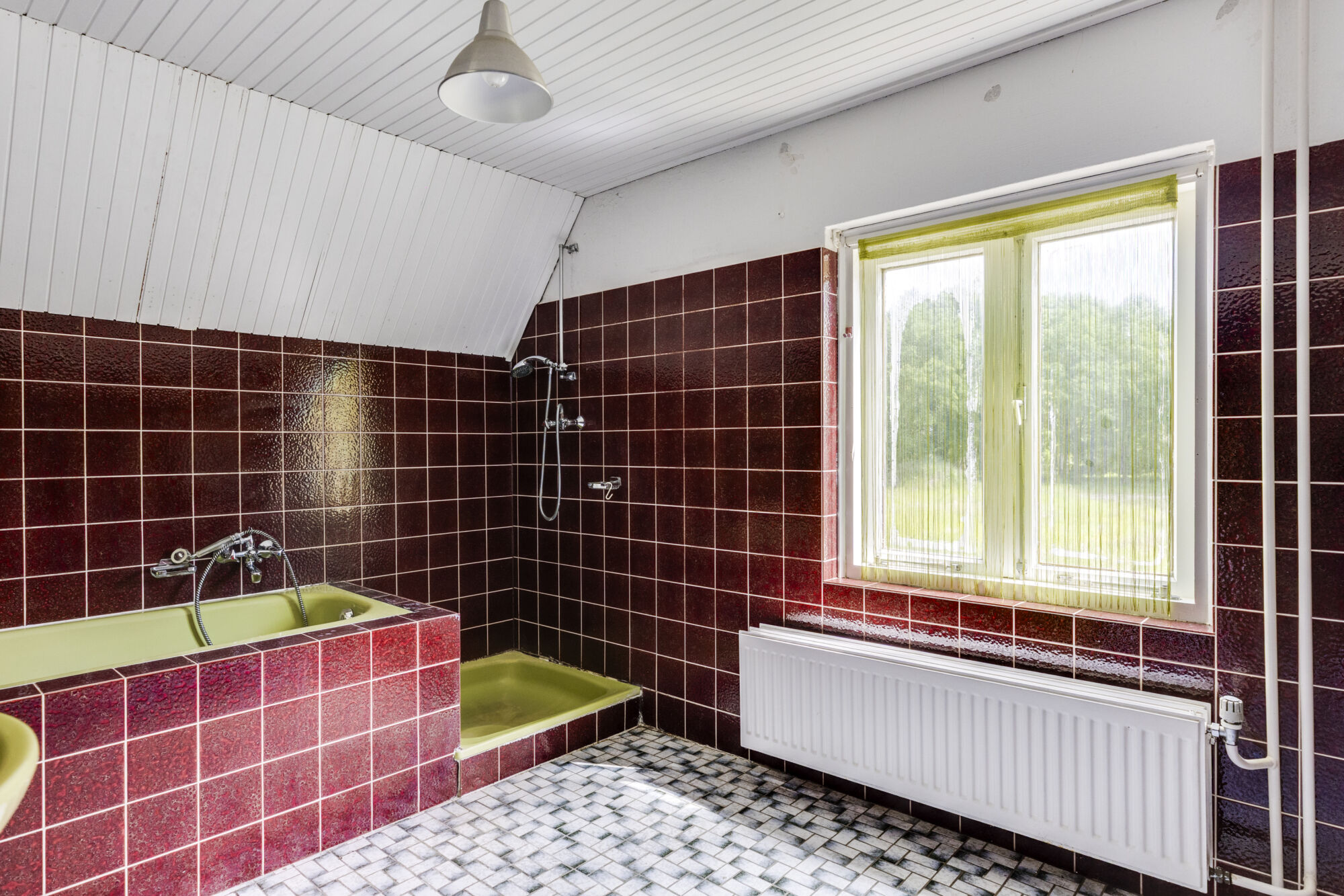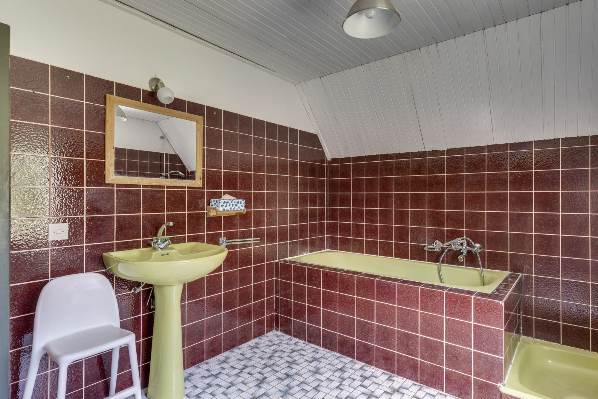 De badkamer is voorzien van een ligbad, een douche, wastafel en toiletaansluiting. Een van de deuren leidt naar de ouderslaapkamer, de andere naar de overloop.