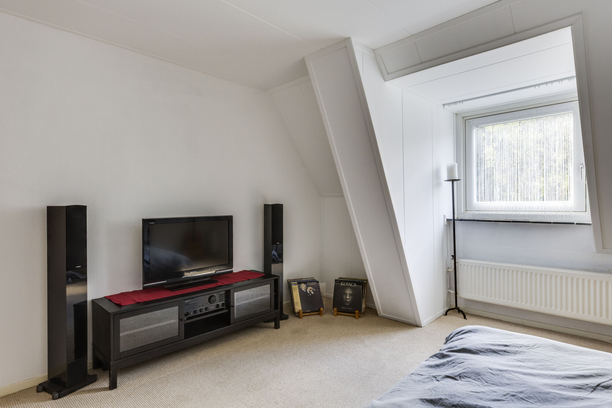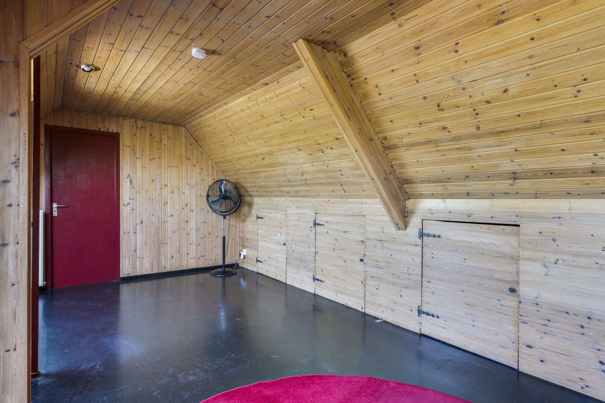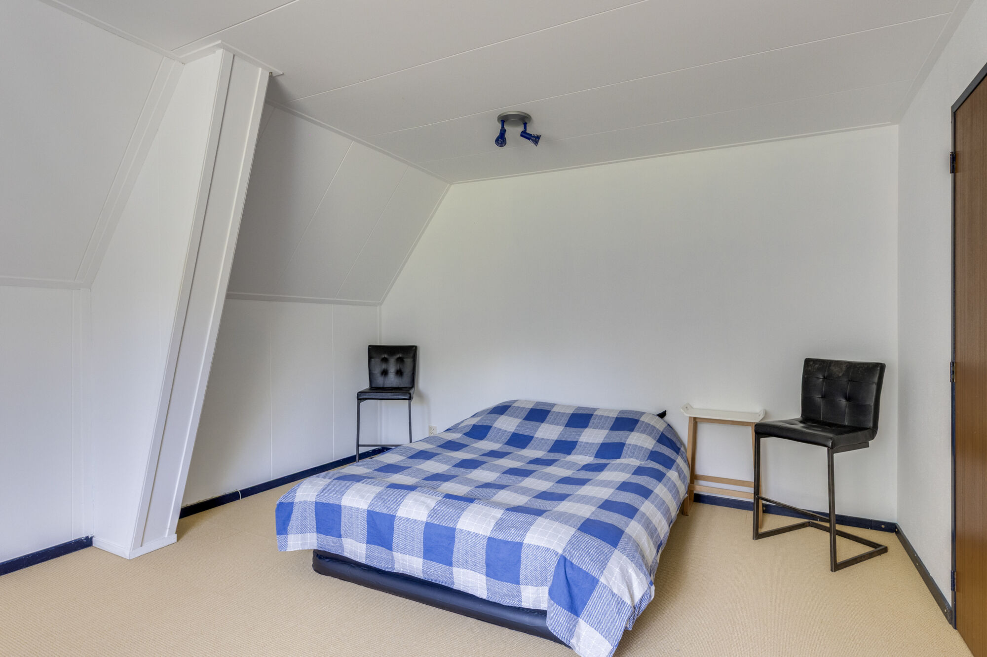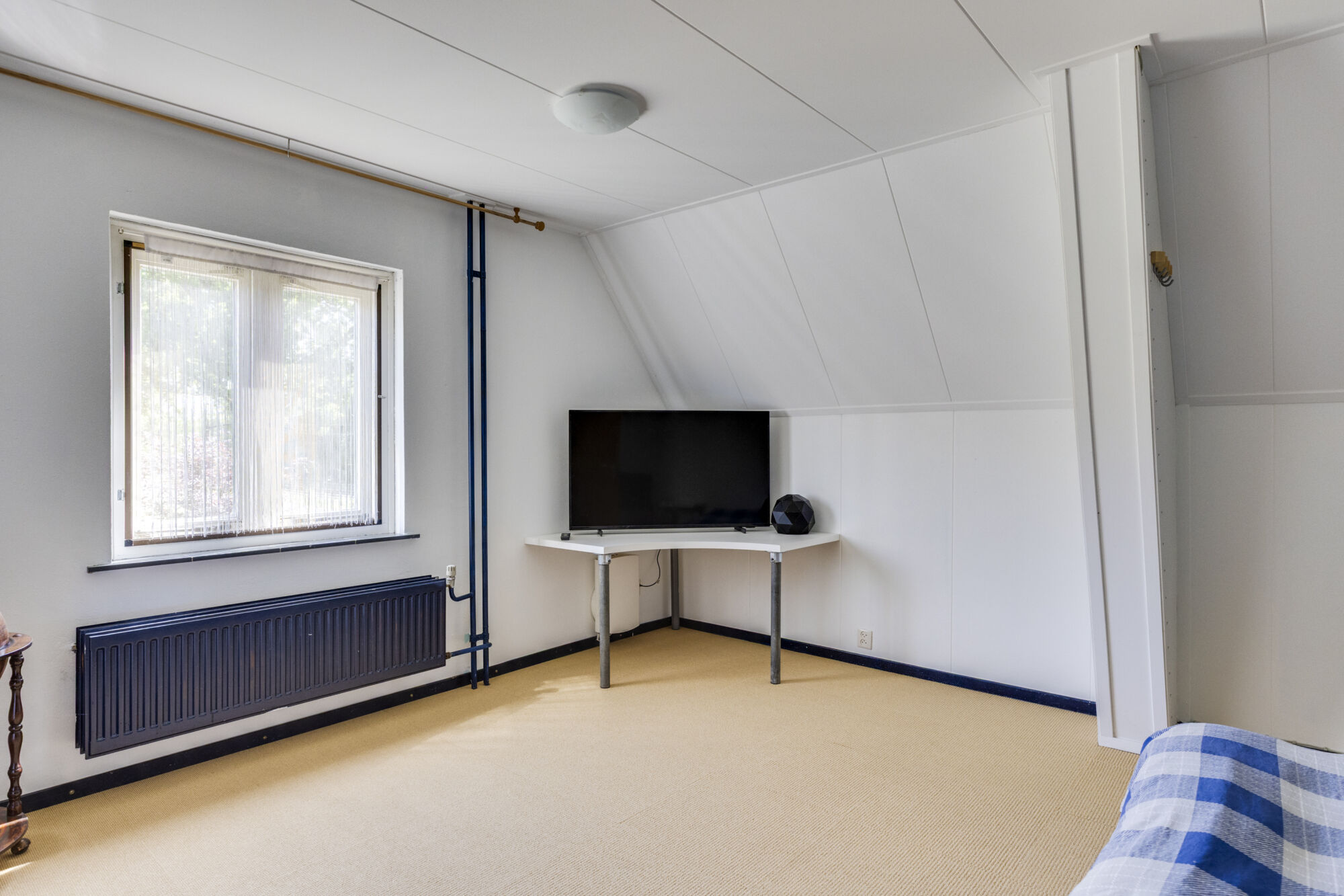 Een vaste trap geeft je toegang tot de tweede verdieping. Ook hier veel ruimte! Een tweetal dakramen zorgen voor volop lichtinval. Achter de knieschotten is veel bergruimte. Deze kamer zou een heel mooie slaapkamer kunnen zijn, maar ook heel geschikt als werkkamer, hobbykamer of sportkamer. Vul maar in!