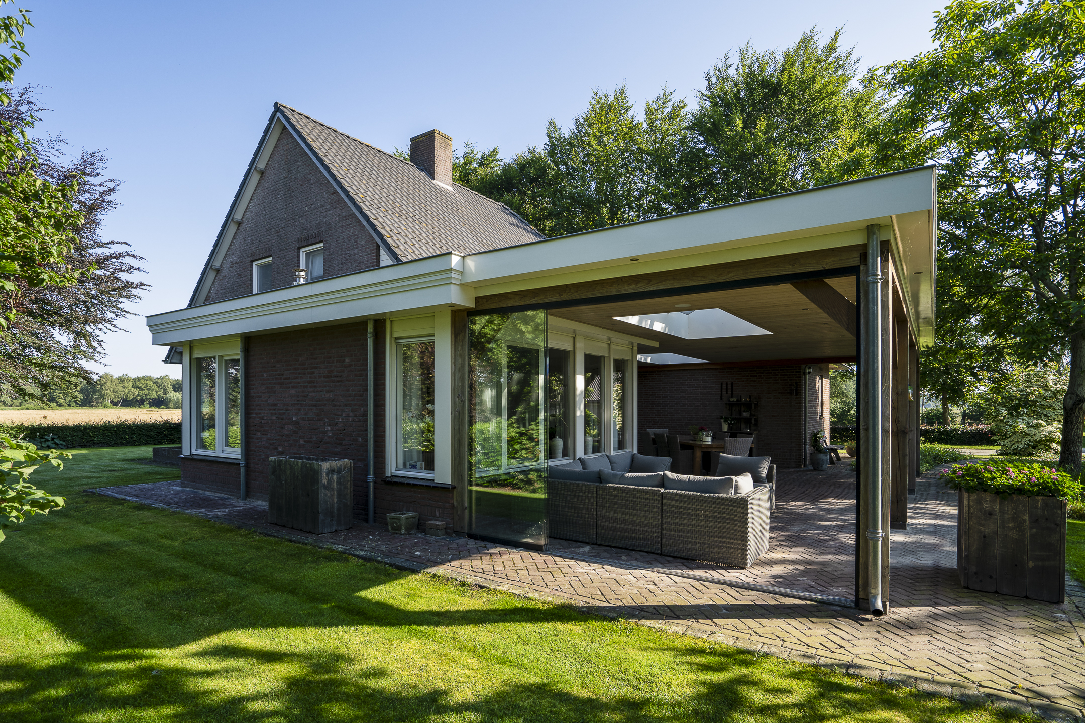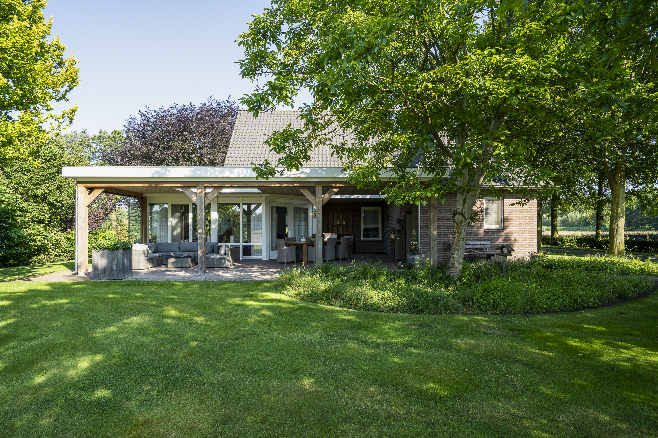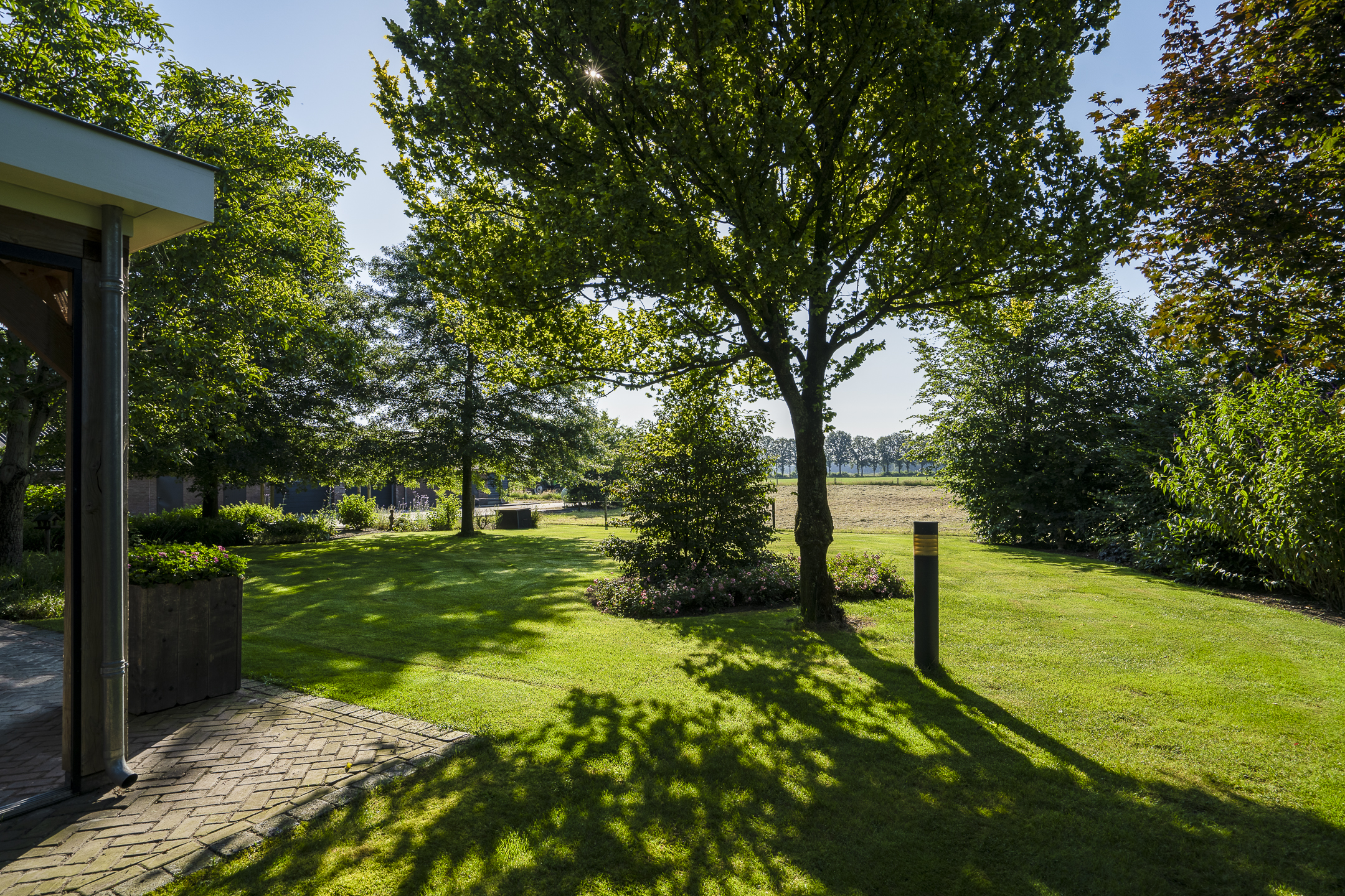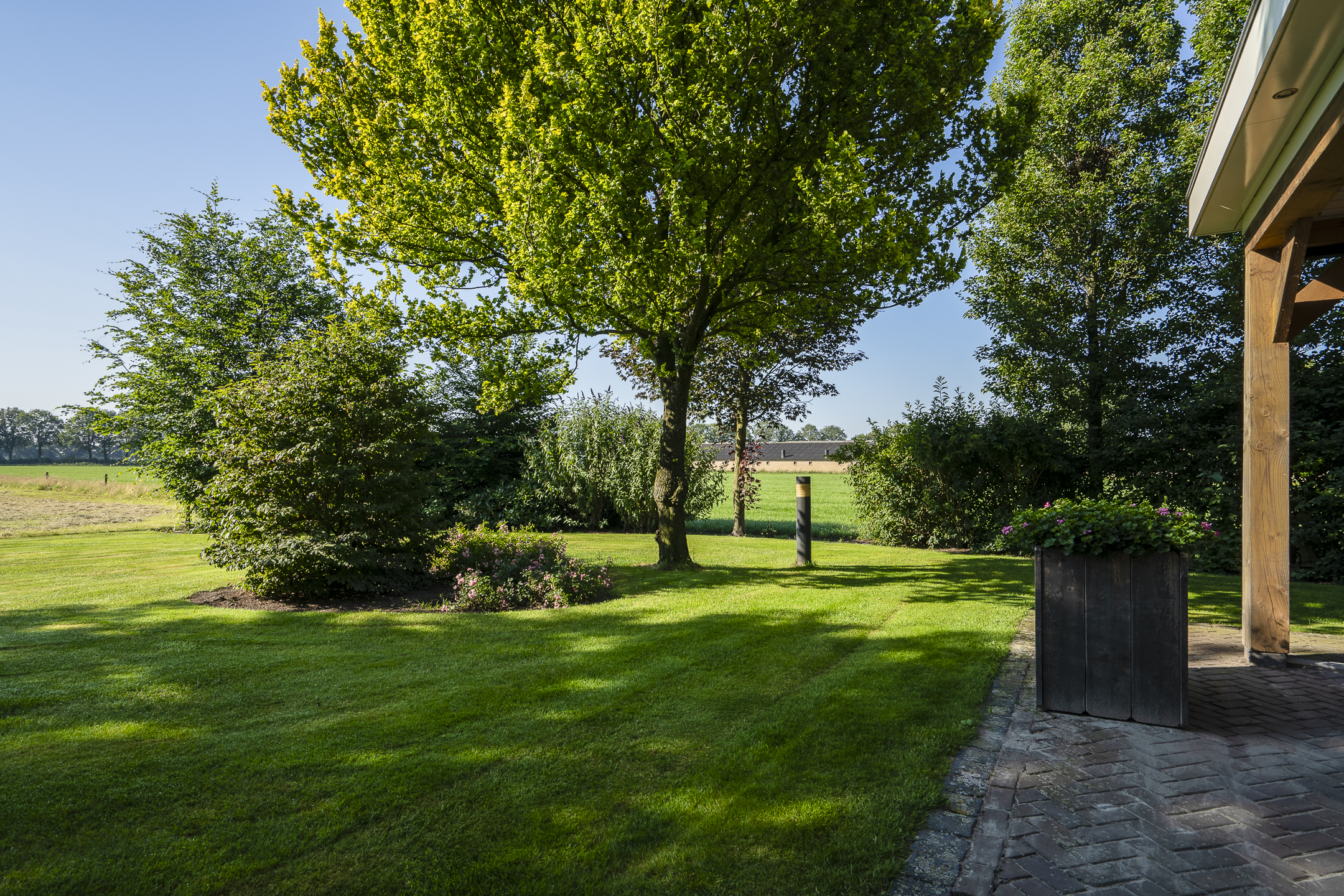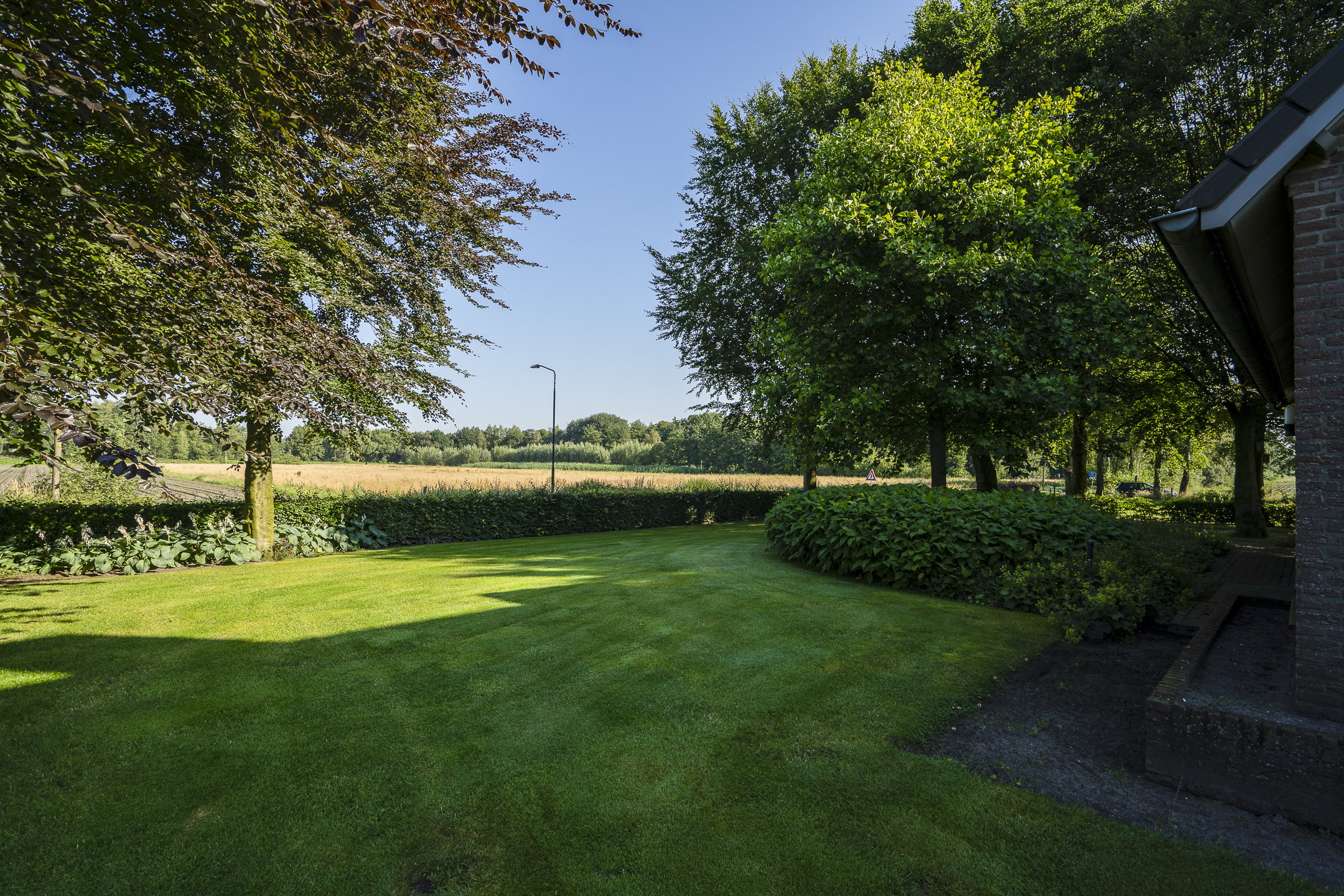 Op een combinatie van drie kadastrale percelen bevindt zich deze fraaie woning. Met een totaal oppervlak van ca. 10.708 m² ervaart u rust en ruimte op uw eigen terrein. Vanuit het portaal van de woning bereikt u het overdekt terras met als het ware de achtertuin. Deze achtertuin is geweldig onderhouden, voorzien van volwassen beplanting, verlichting en beschikt over een vraag gestuurd beregeningssysteem welke ook in de voortuin aanwezig is.