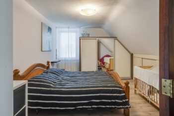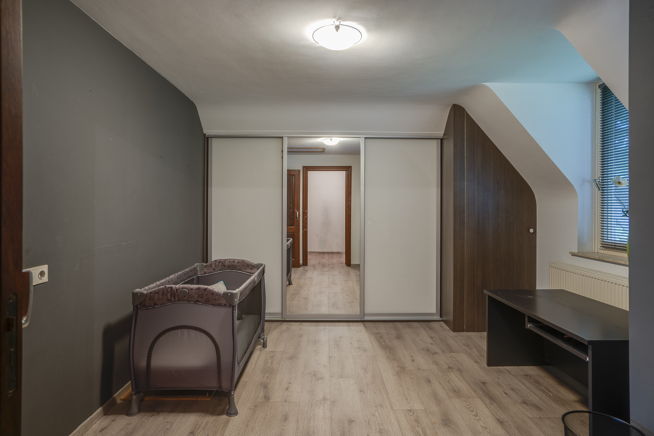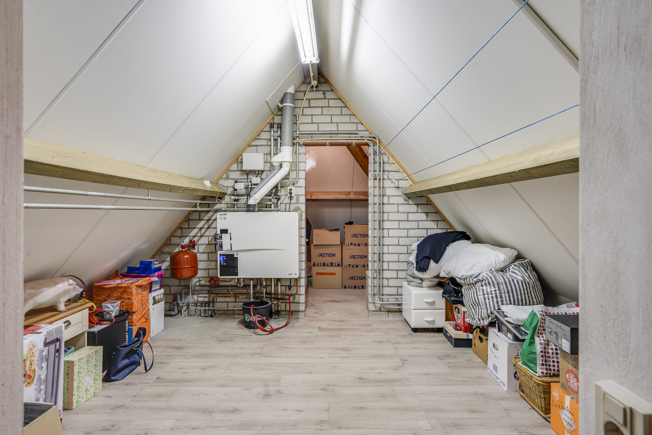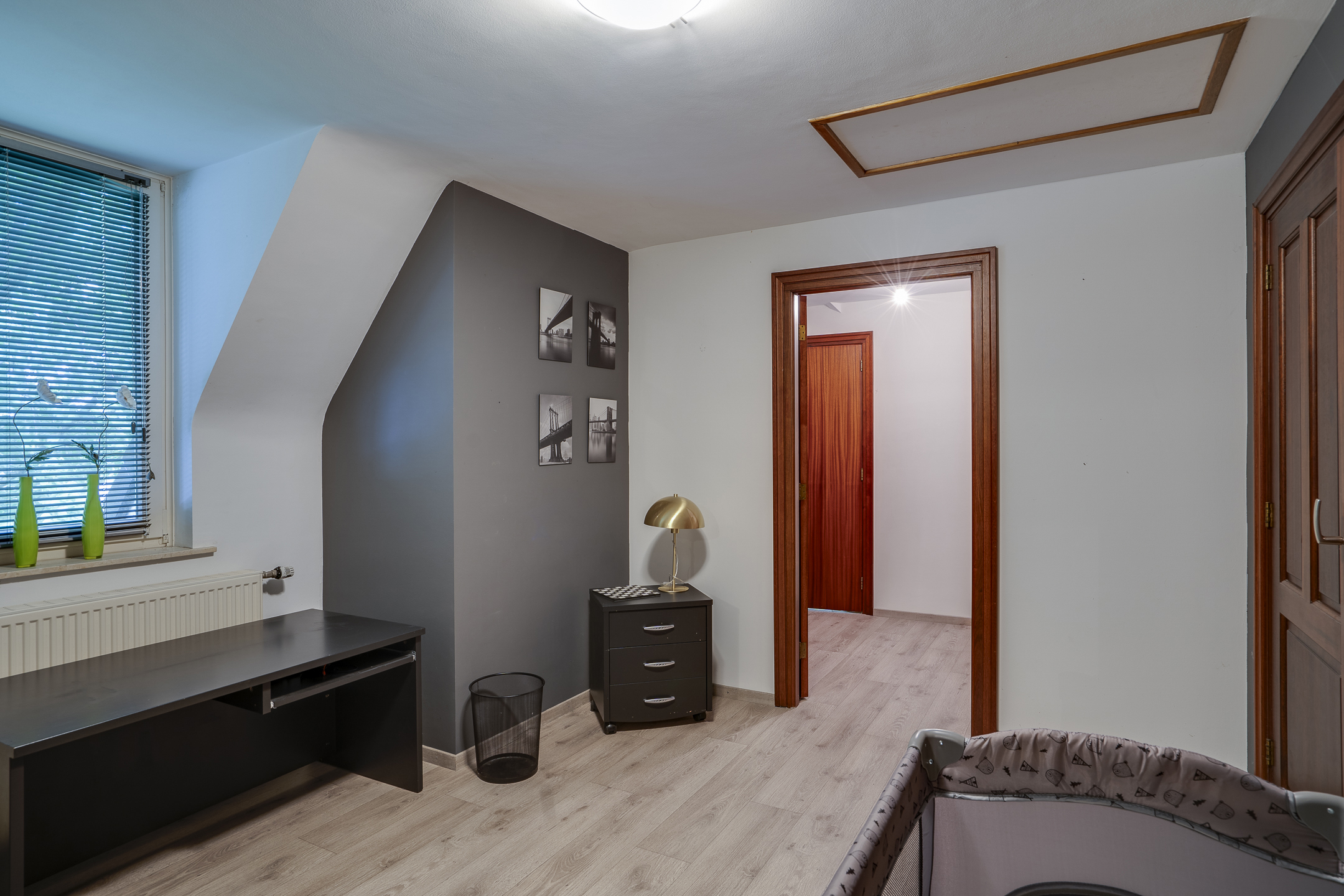 Deze slaapkamer beschikt tevens over de toegang richting de achtergelegen zeer praktische bergzolder, hier treffen we de C.V.-ketel én vanuit deze kamer is ook de ruime bergzolder gelegen op de derde woonlaag toegankelijk.