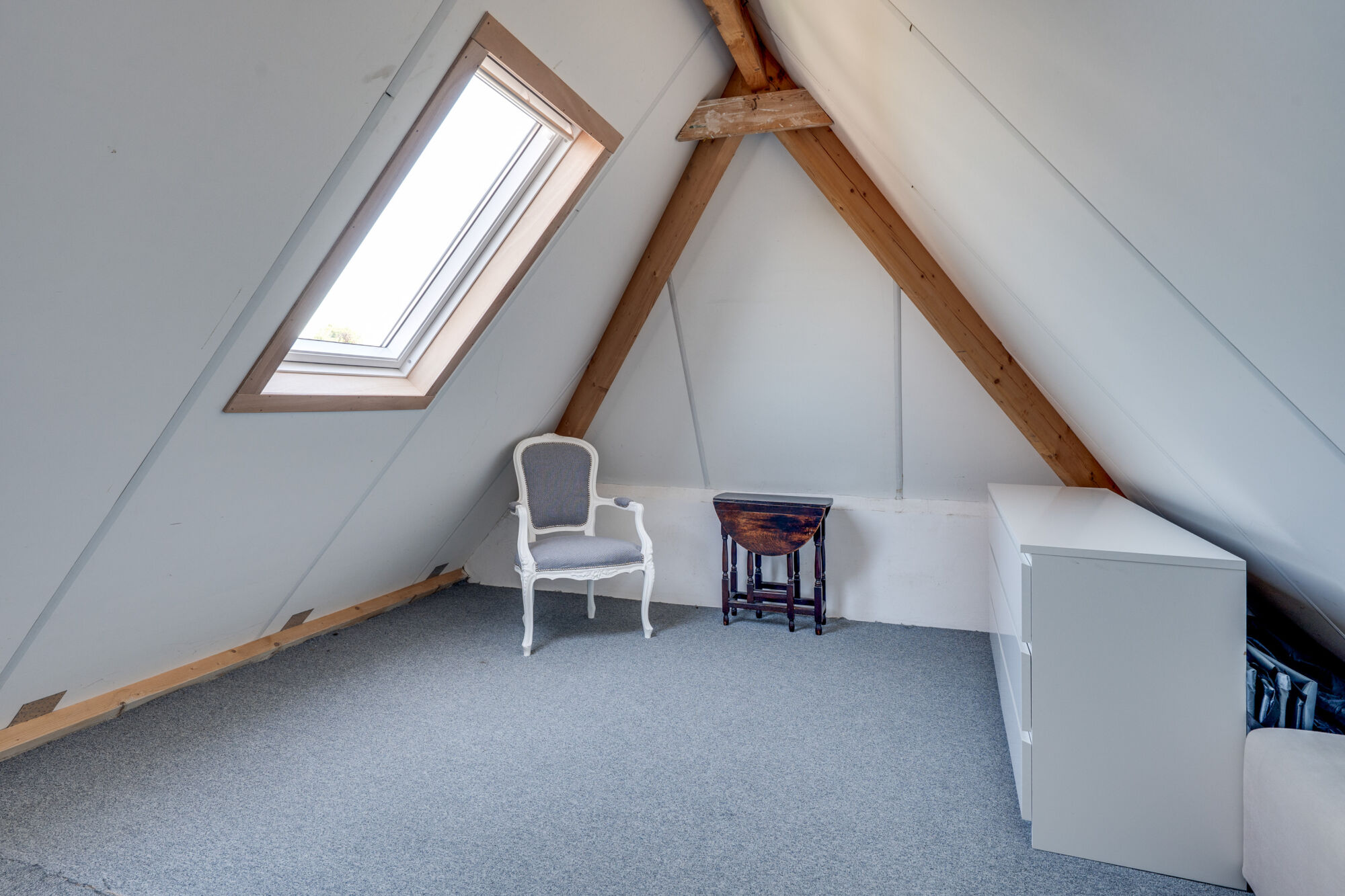 Via een vaste trap bereik je de zolder. Deze is verdeeld in een voorzolder, geschikt als bergruimte. In de naastgelegen ruimte kan een vierde volwaardige slaapkamer gerealiseerd worden.