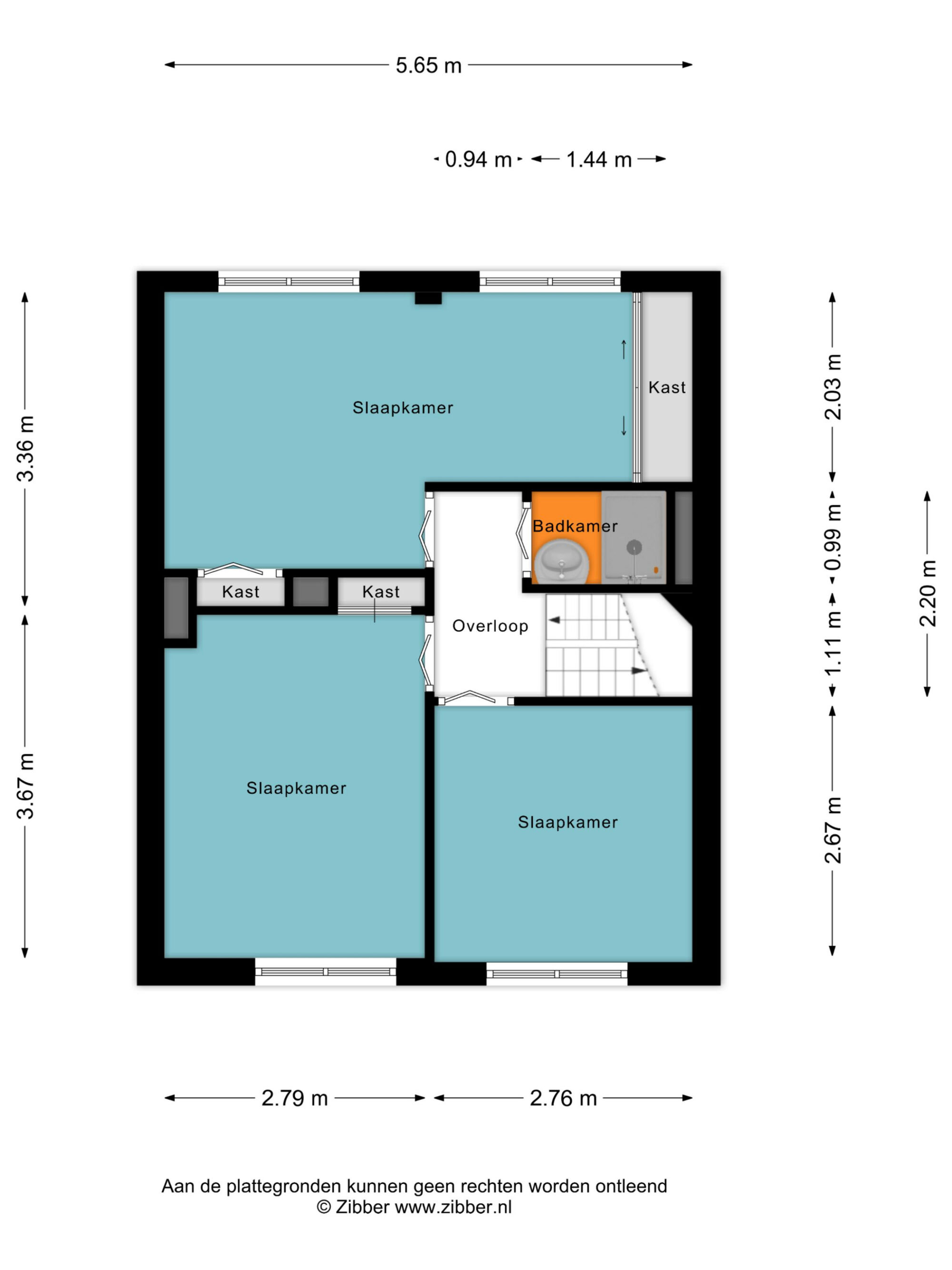 De overloop geeft toegang drie (slaap)kamers en de badkamer. Op deze verdieping zijn kunststof kozijnen met isolerende beglazing toegepast. Allemaal voorzien van horren en rolluiken. De grootste slaapkamer heeft een L-vorm met een inbouwkast en een inbouwde kast met schuifdeuren. Deze kamer is nu in