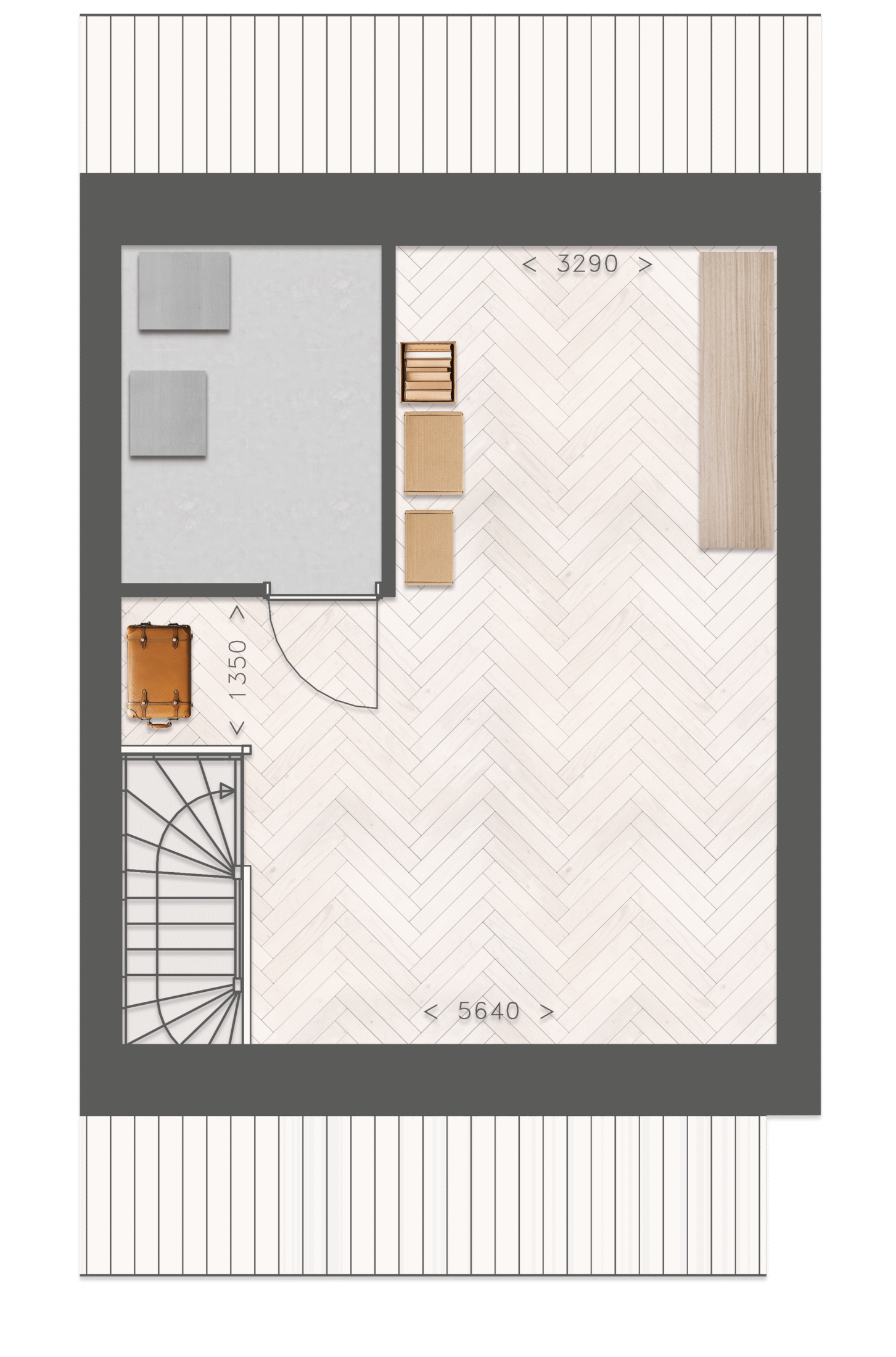 De begane grond is praktisch en compleet ingericht met een ruime woonkamer, een open keuken, een slaapkamer én een badkamer. Via een vaste trap bereik je de eerste verdieping, die naar wens in te richten is als extra werk-, logeer- of hobbykamer.