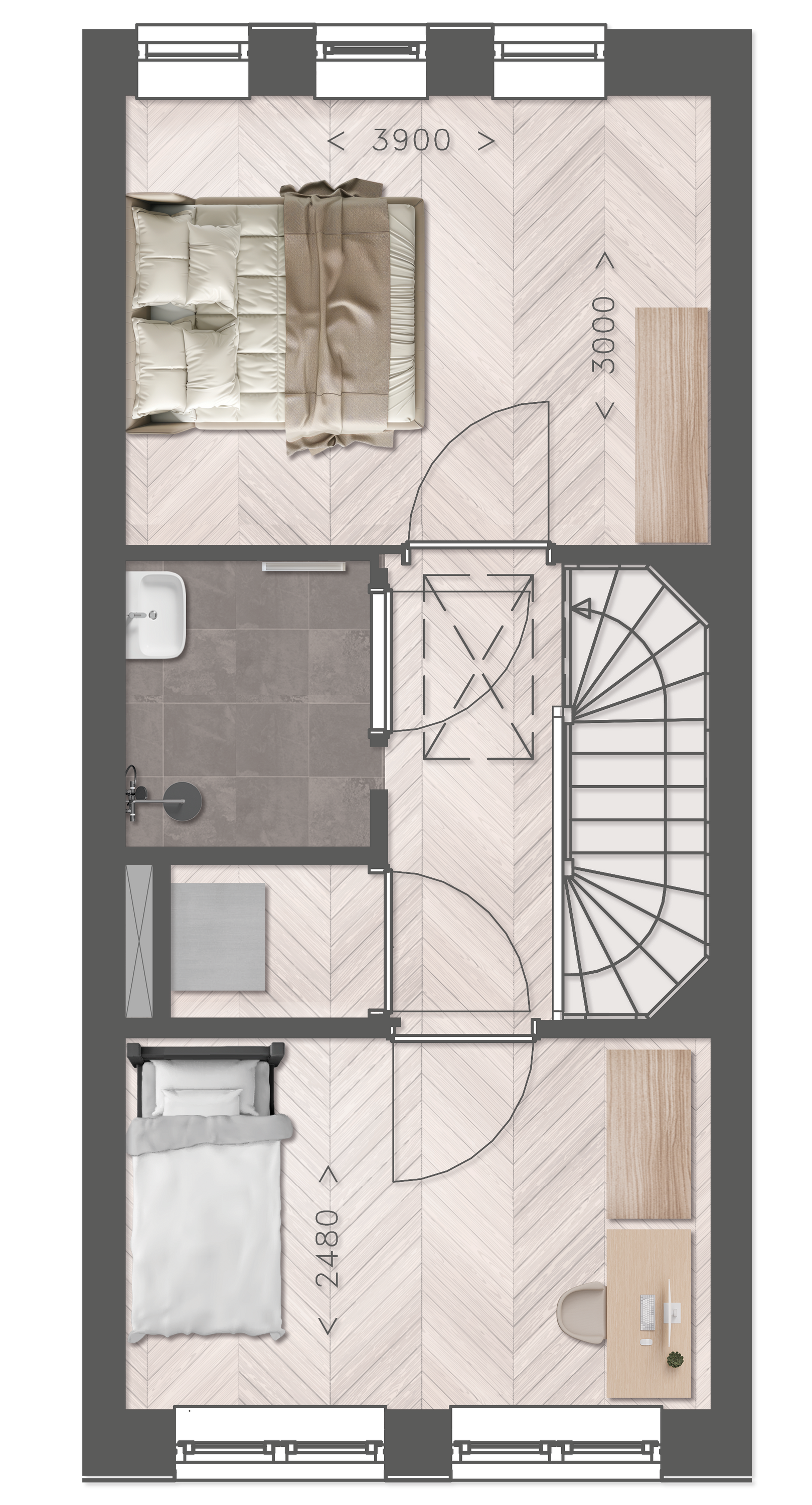 • Twee slaapkamers op de verdieping