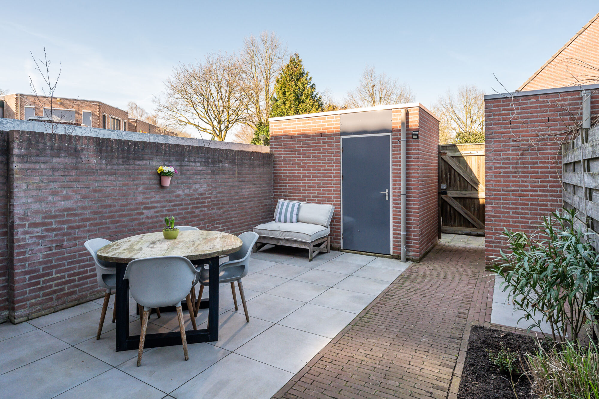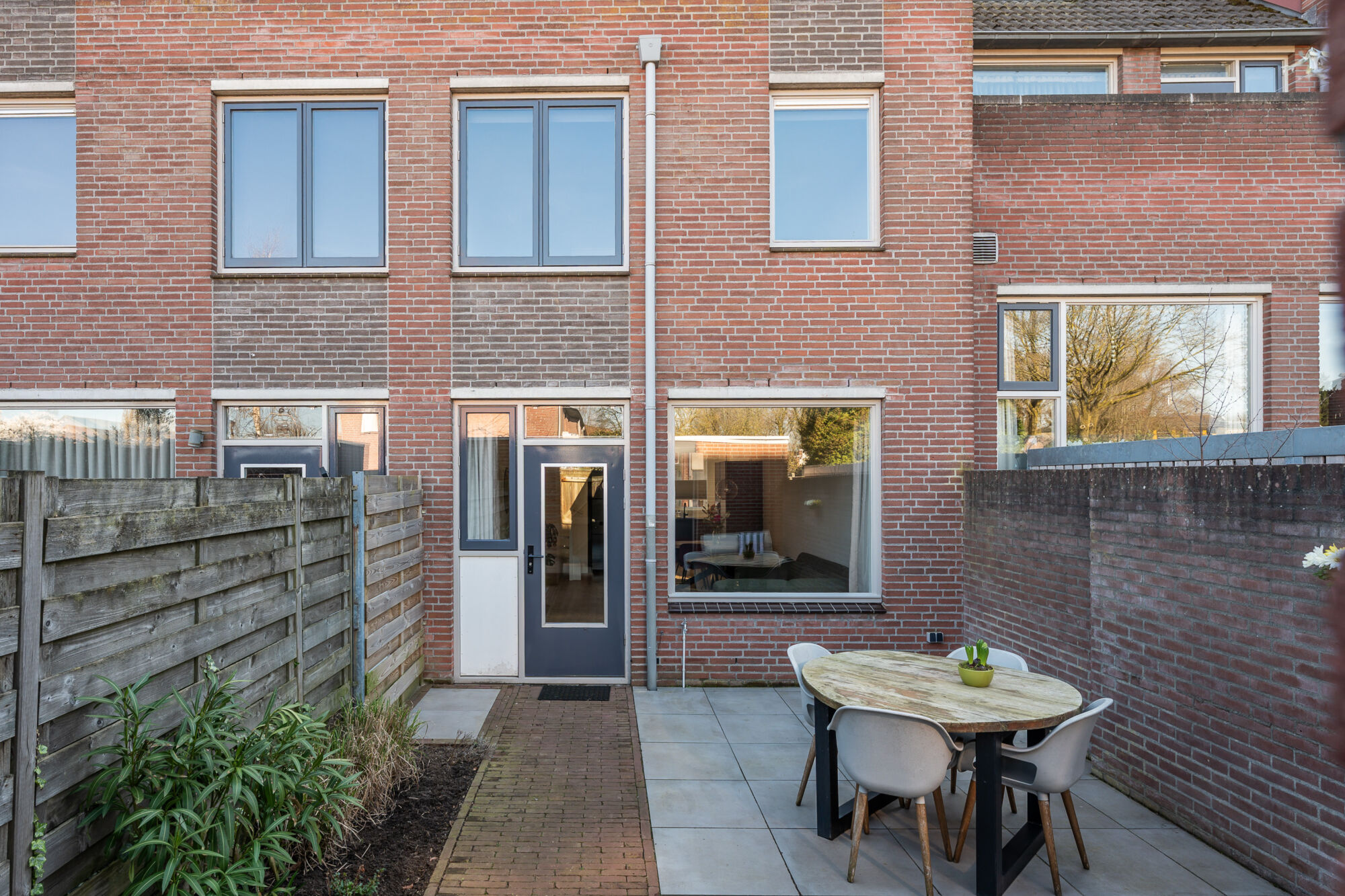 – Onderhoudsvriendelijke en privacy biedende achtertuin voorzien van eigen achterom en bergingsruimte;