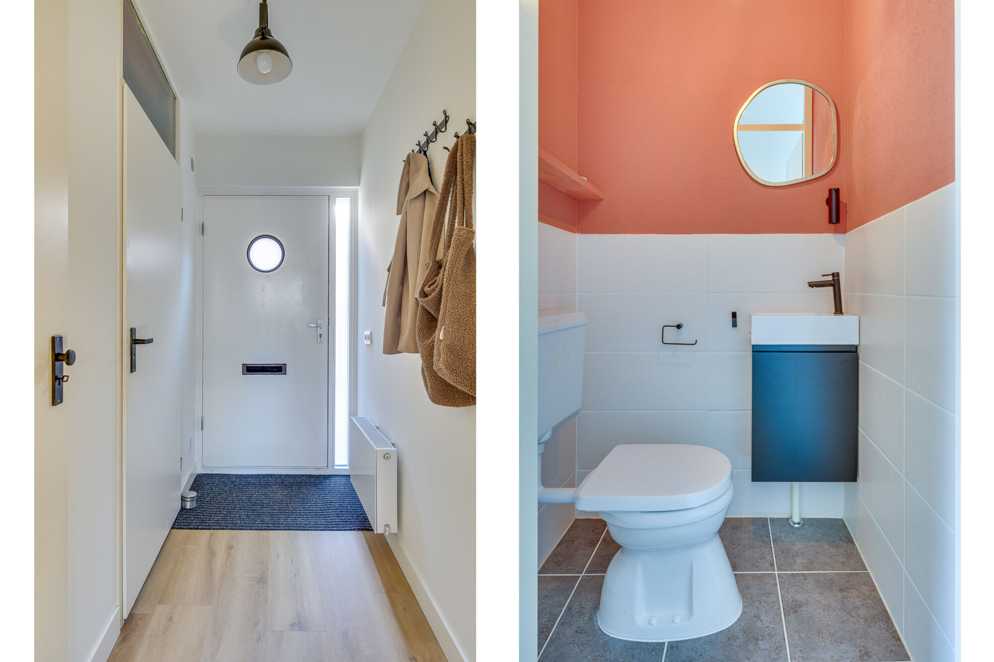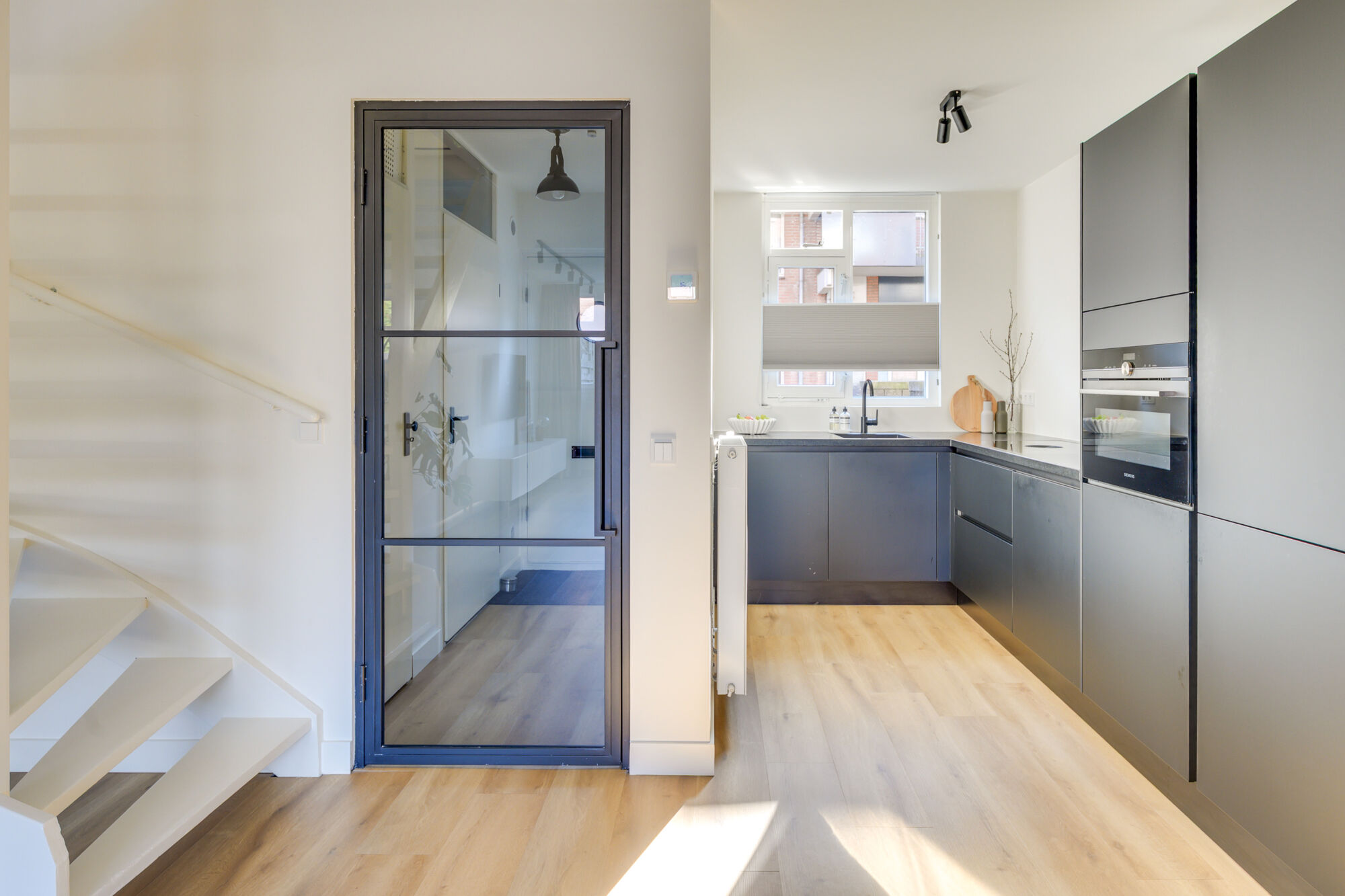 Bij binnenkomst ervaart u direct een hoogwaardig gevoel van afwerking aan zowel de wanden-, plafonds en vloeren. Daarbij beschikt de entree over een moderne glazen tussendeur richting de woonkamer! Verder bevinden zich de toiletruimte en de bergingsruimte met opstelling van de verwarmingsunit in de entree van deze woning.