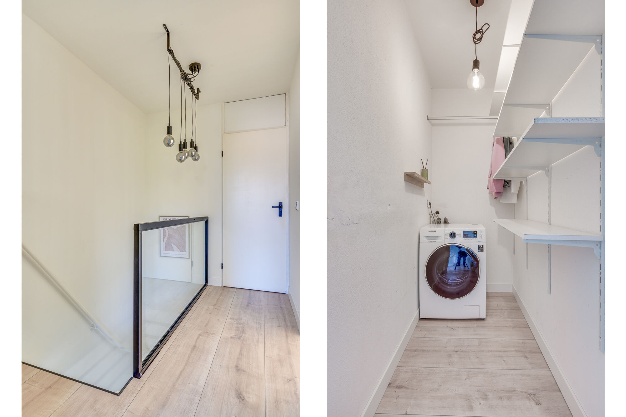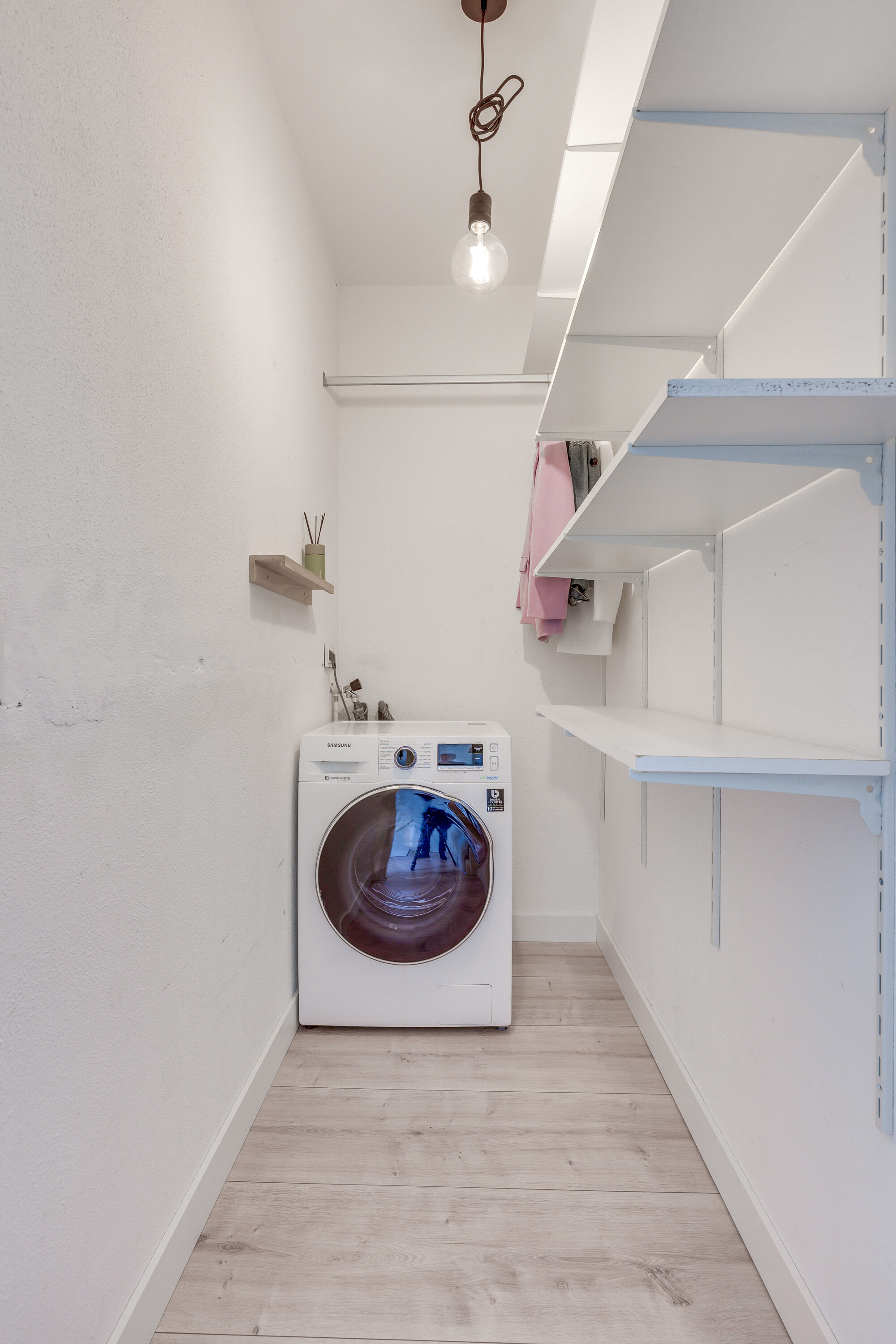 Vanuit de overloop krijgt u ook toegang tot de wasruimte. Deze praktische en afsluitbare ruimte beschikt over de mogelijkheid uw spullen te bergen vanwege diverse legplanken. Verder beschikt deze ruimte over de witgoedaansluitingen.