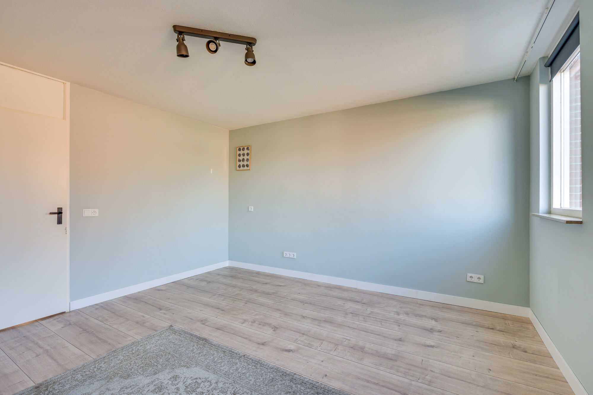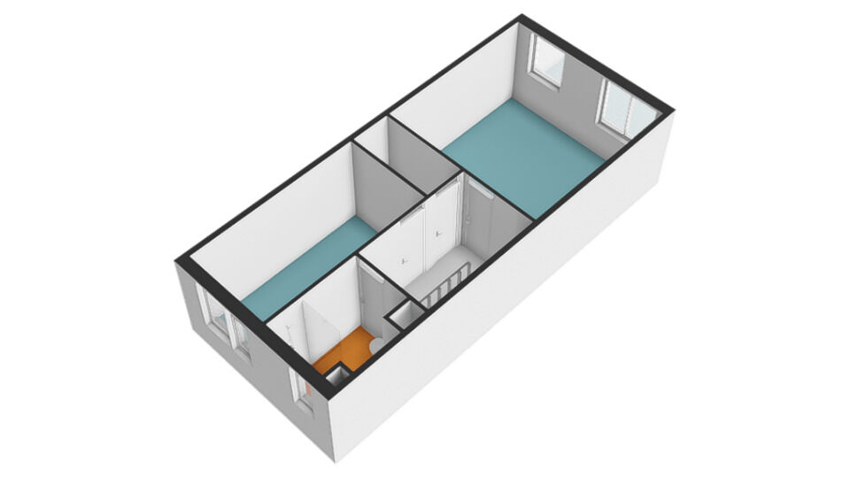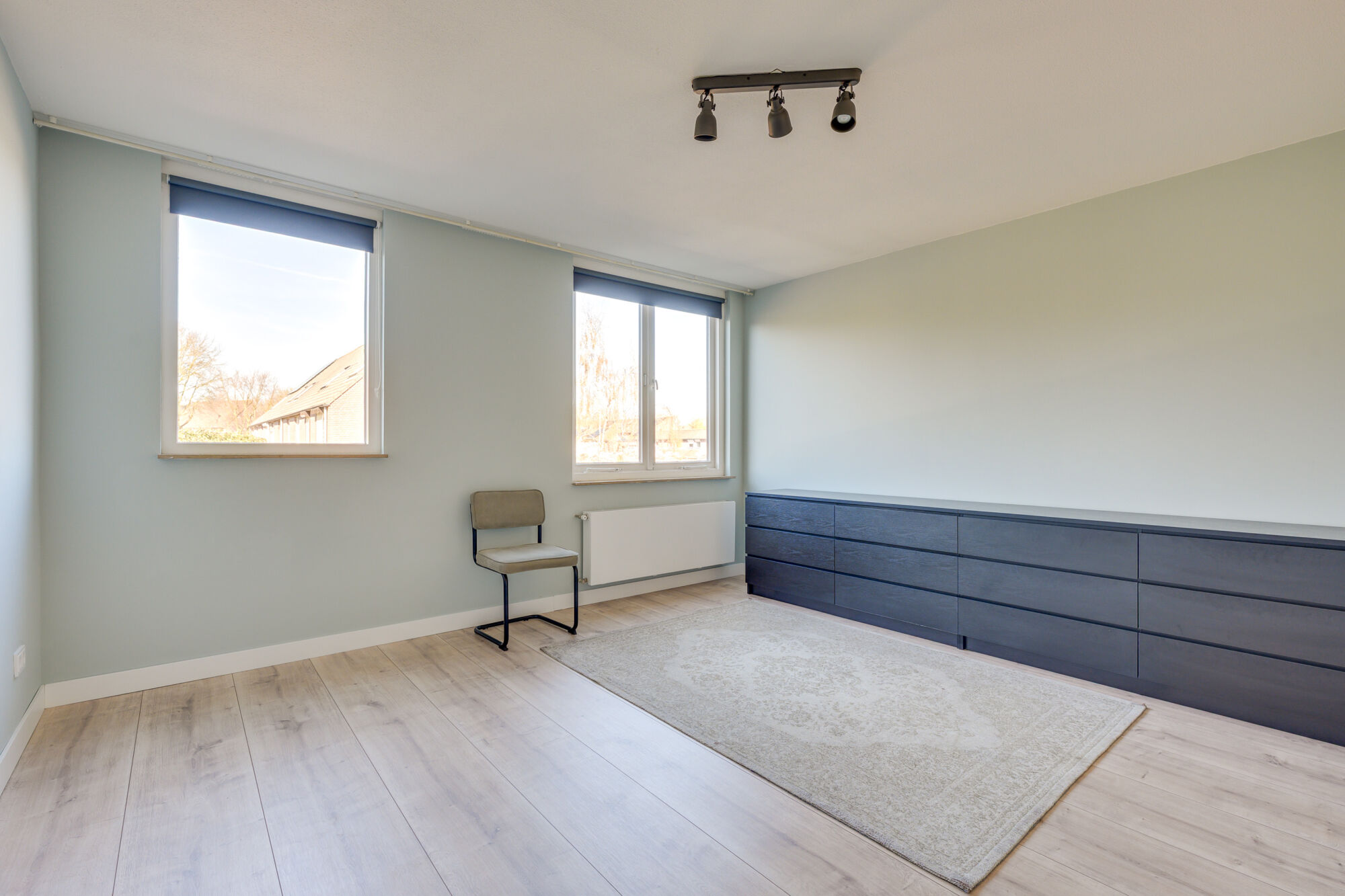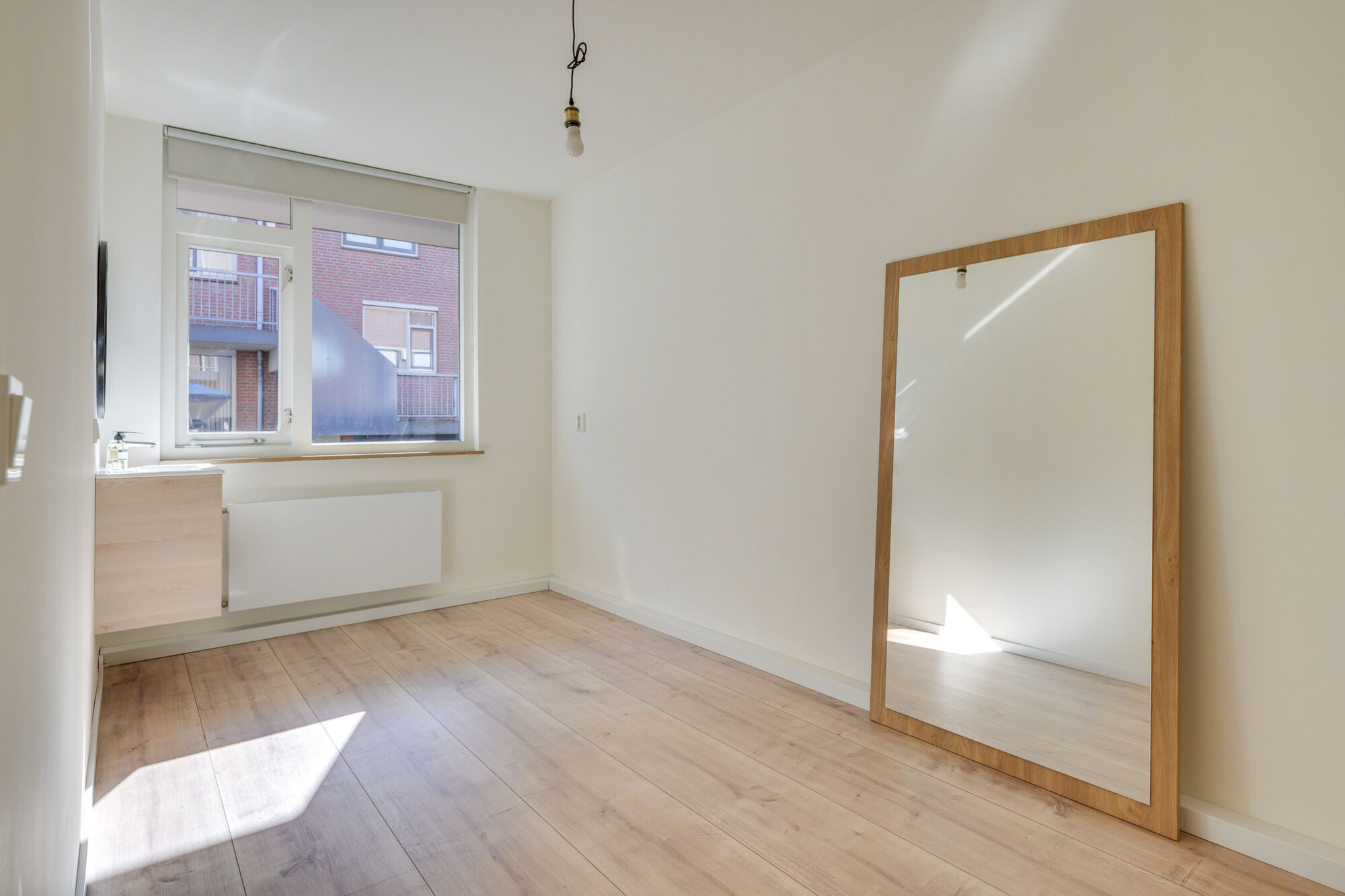 Aan de voorzijde van de woning bevindt zich de tweede slaapkamer. Wederom een fijne slaapkamer voorzien van lange wanden waardoor het plaatsen van uw meubilair eenvoudig is. Ook is hier een eigen wastafelmeubel aanwezig. De oppervlakte van de slaapkamer betreft circa 10 m².