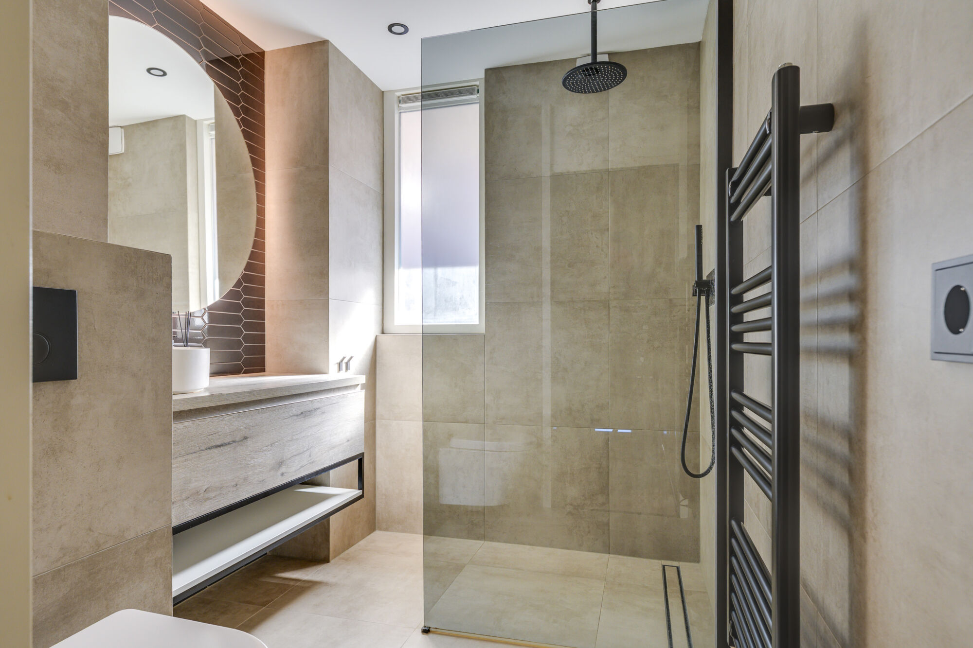 In 2022 is ook de badkamer compleet vernieuwd! Een super goed onderhouden en moderne badkamer voorzien van strak tegelwerk, een wandcloset, wastafelmeubel en ruime inloopdouche. Ten behoeve van ventilatie beschikt de badkamer over mechanische ventilatie en een raam ten behoeve van de gewenste natuurlijke ventilatie.