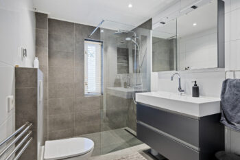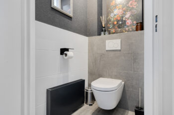 De badkamer van deze woning is hoogwaardig afgewerkt en oogt zeer modern! De badkamer is voorzien van (elektrische) vloerverwarming, een wandcloset, breed wastafelmeubel en een ruime inloopdouche. Deze badkamer beschikt over prachtig tegelwerk in moderne kleurstellingen!