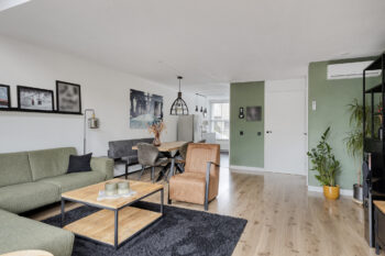 Bij binnenkomst in deze fijne woonkamer ervaart u ruimte, rust en wooncomfort dankzij de strakke en moderne afwerking van vloeren, wanden en plafonds. Deze woonkamer is voorzien van een airconditioningssysteem ten behoeve van koelen én verwarmen en biedt vanwege zijn aanwezige oppervlakte prettige indelingsmogelijkheden!