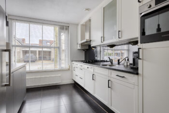 De keuken is voorzien van een nette tegelvloer en wederom een strakke wand- en plafondafwerking waardoor deze gehele woning uniformiteit uitstraalt!