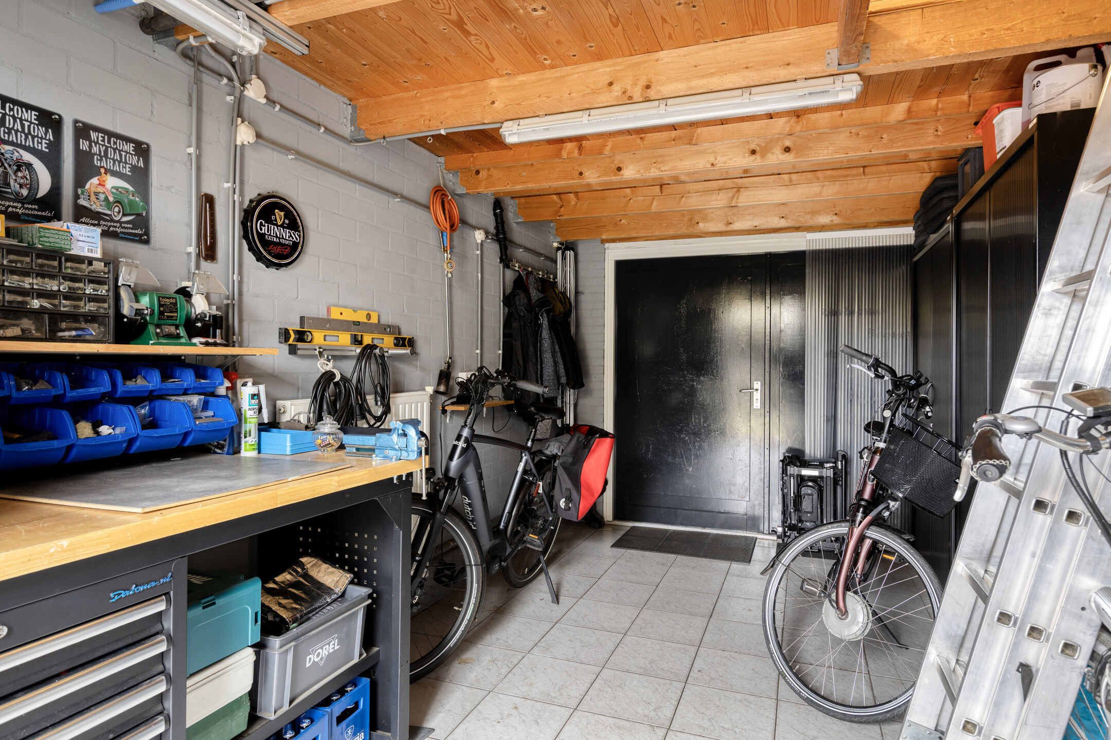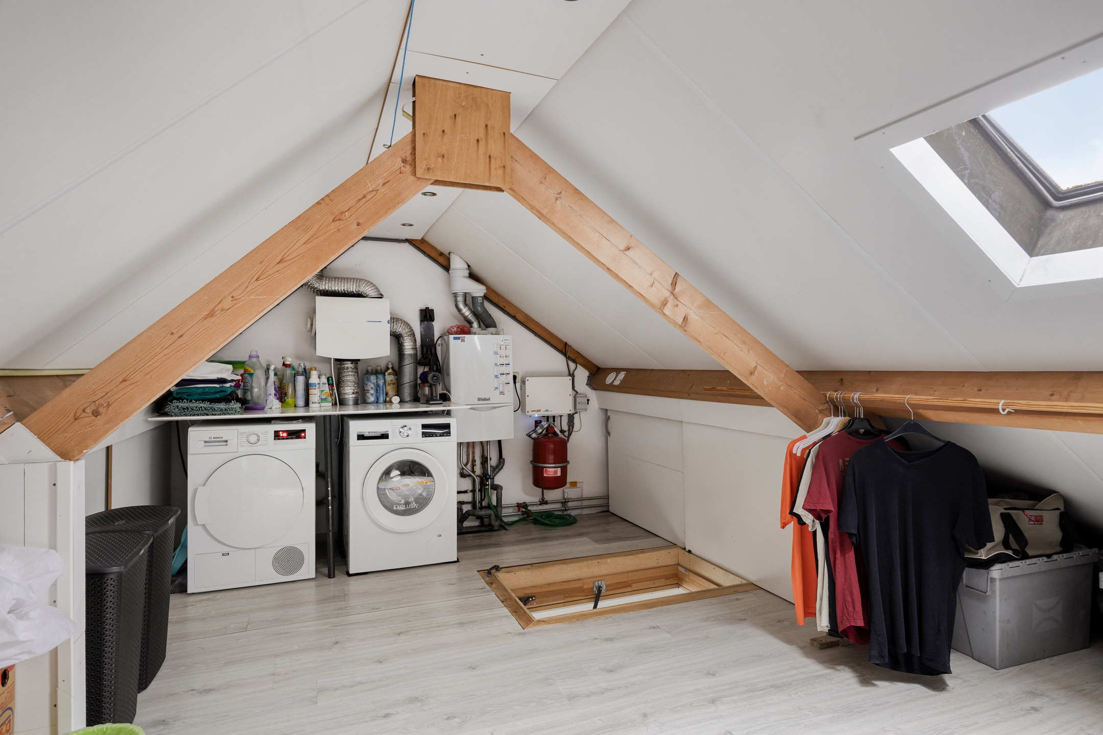 De zolder van de garage verzorgt de gewenste extra bergingsmogelijkheid. Verder beschikt de garage over diverse elektrapunten en de mogelijkheid uw witgoedinstallaties te kunnen plaatsen.