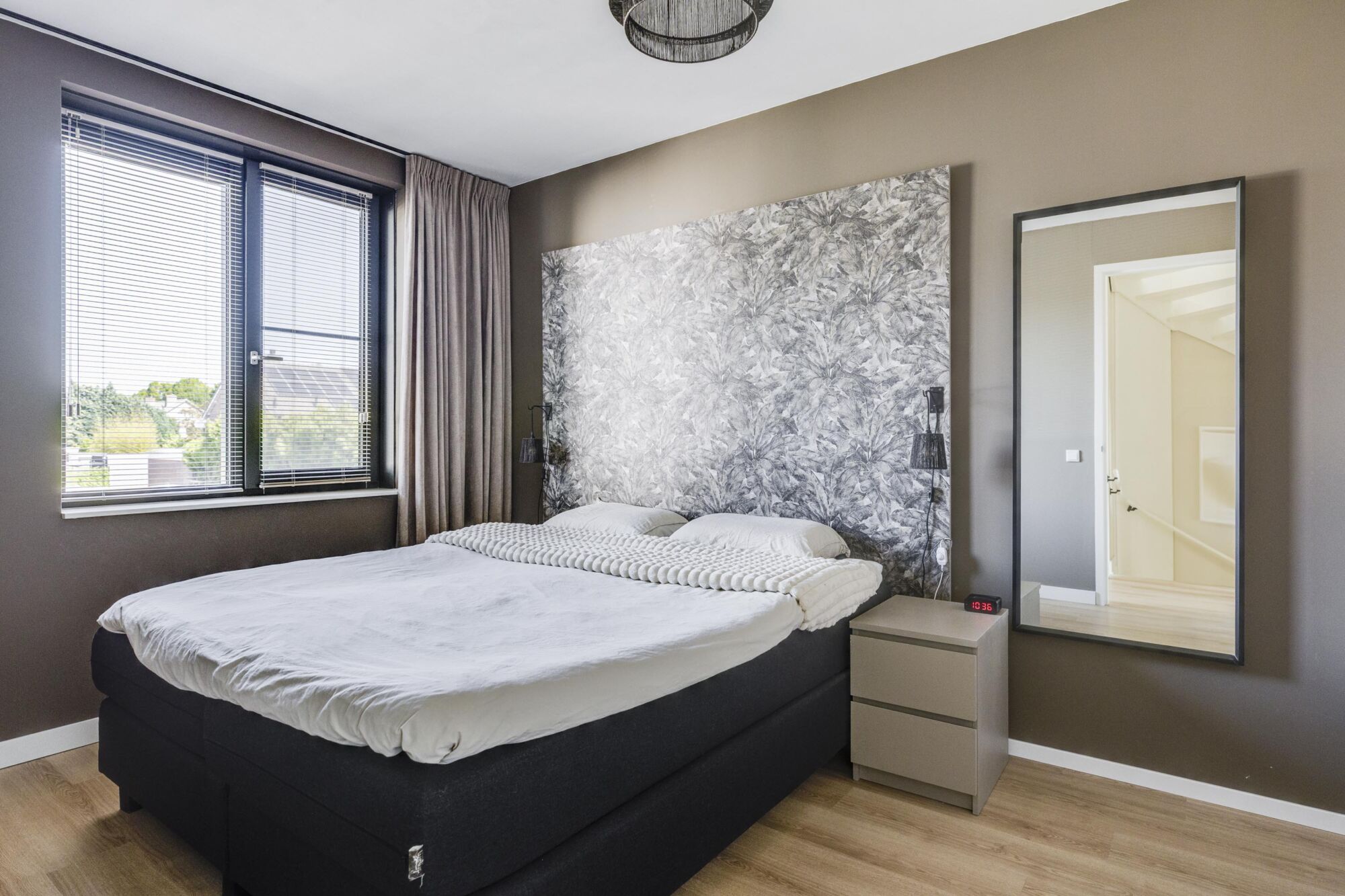 Op de eerste verdieping bevinden zich drie slaapkamers. De master-bedroom is gelegen aan de rustige achterzijde van de