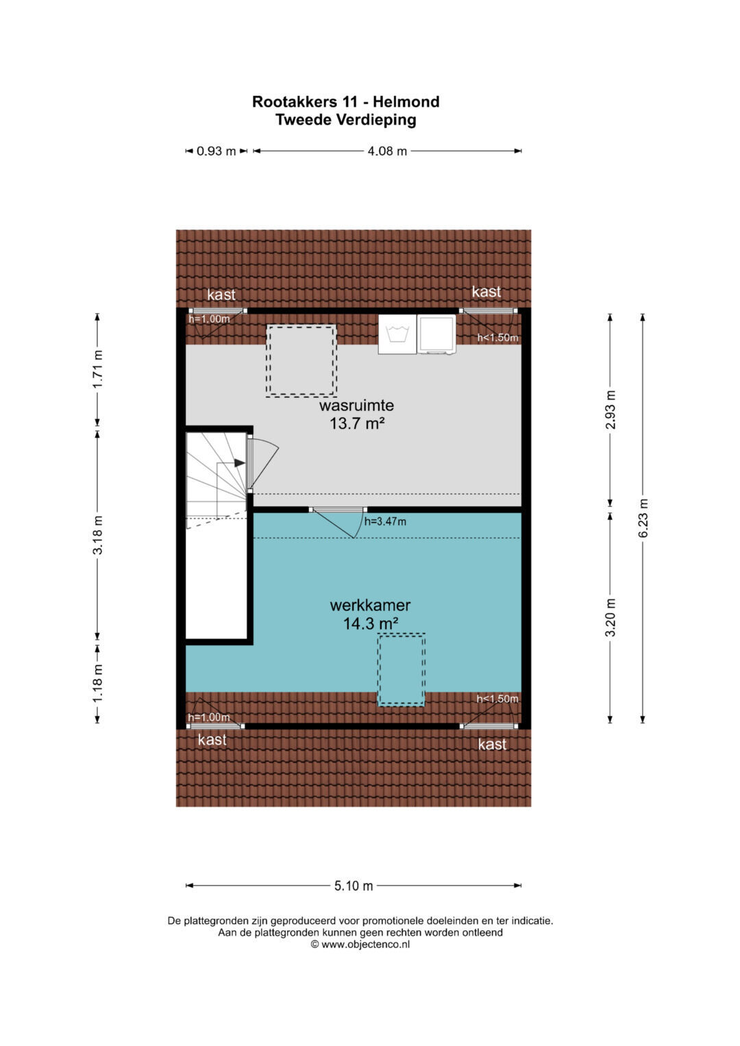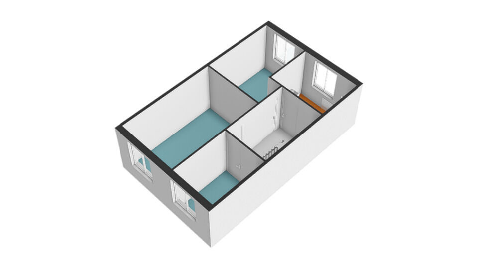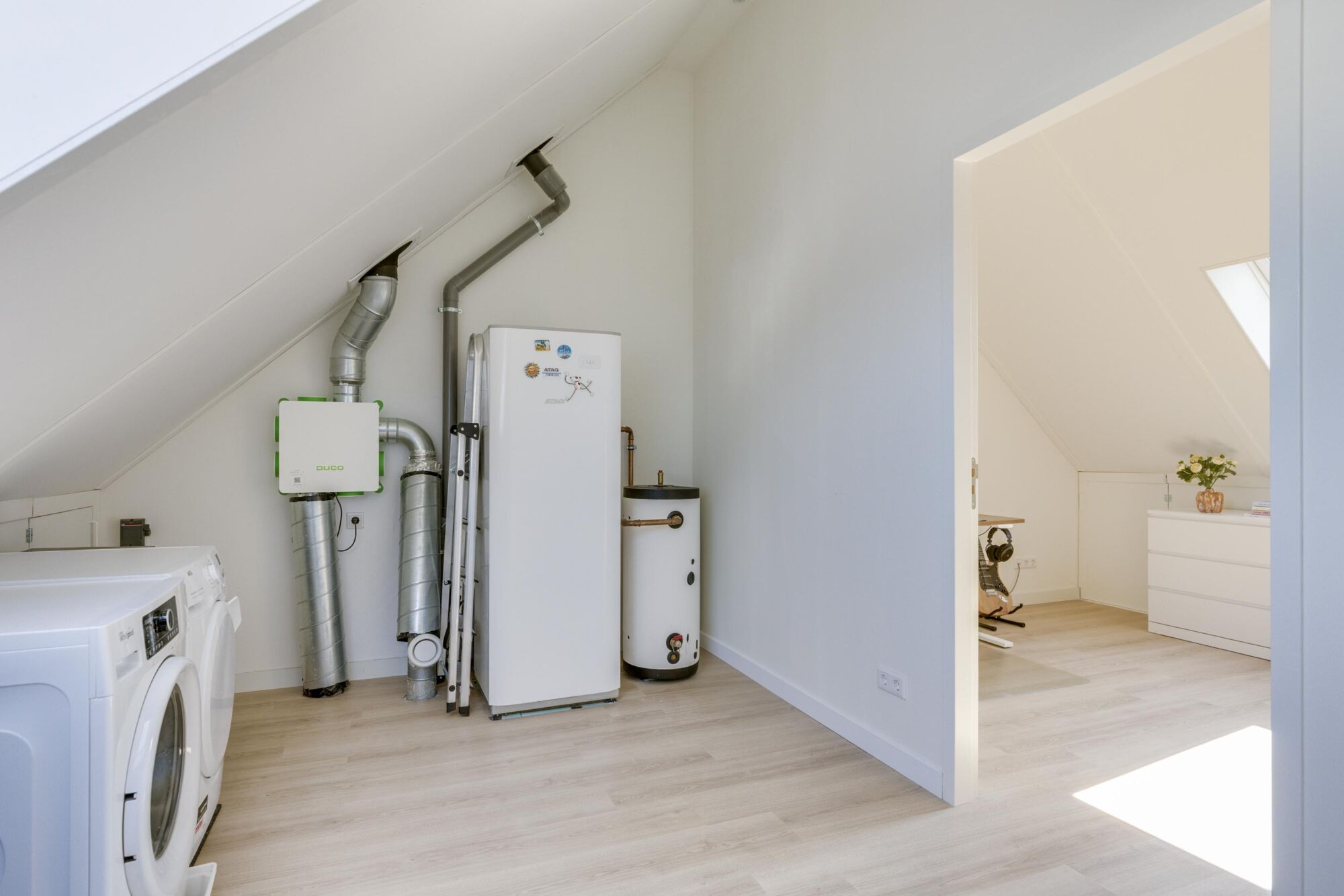 Via de trapopgang bereiken we de overloop van de tweede verdieping. Ook deze ruimtes genieten veel daglichttoetreding vanwege de twee dakramen. Deze verdieping is daarbij opgedeeld in twee ruimtes: een wasruimte met installaties en een vierde slaapkamer, welke momenteel als kantoorruimte gebruikt wordt.