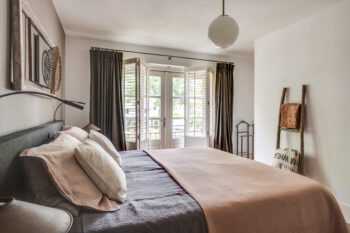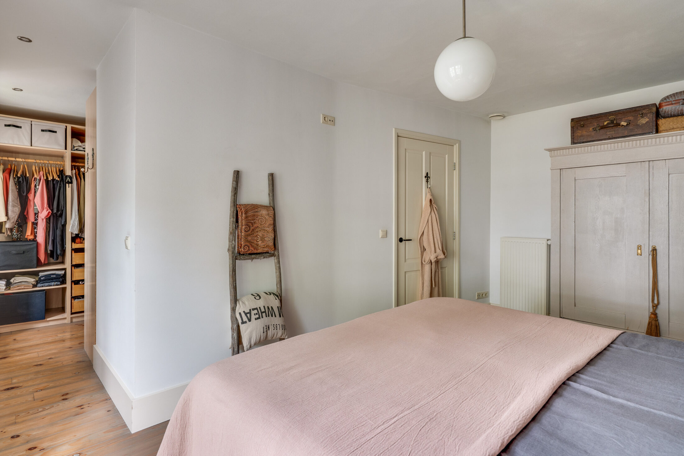 De master-bedroom is gelegen aan de voorzijde van de woning. Dubbele openslaande deuren leiden naar een balkon met een uitzicht over de fraaie Schutsboom. Vanuit de master bedroom bereikt u via een doorloop een royale inbouwkast.
