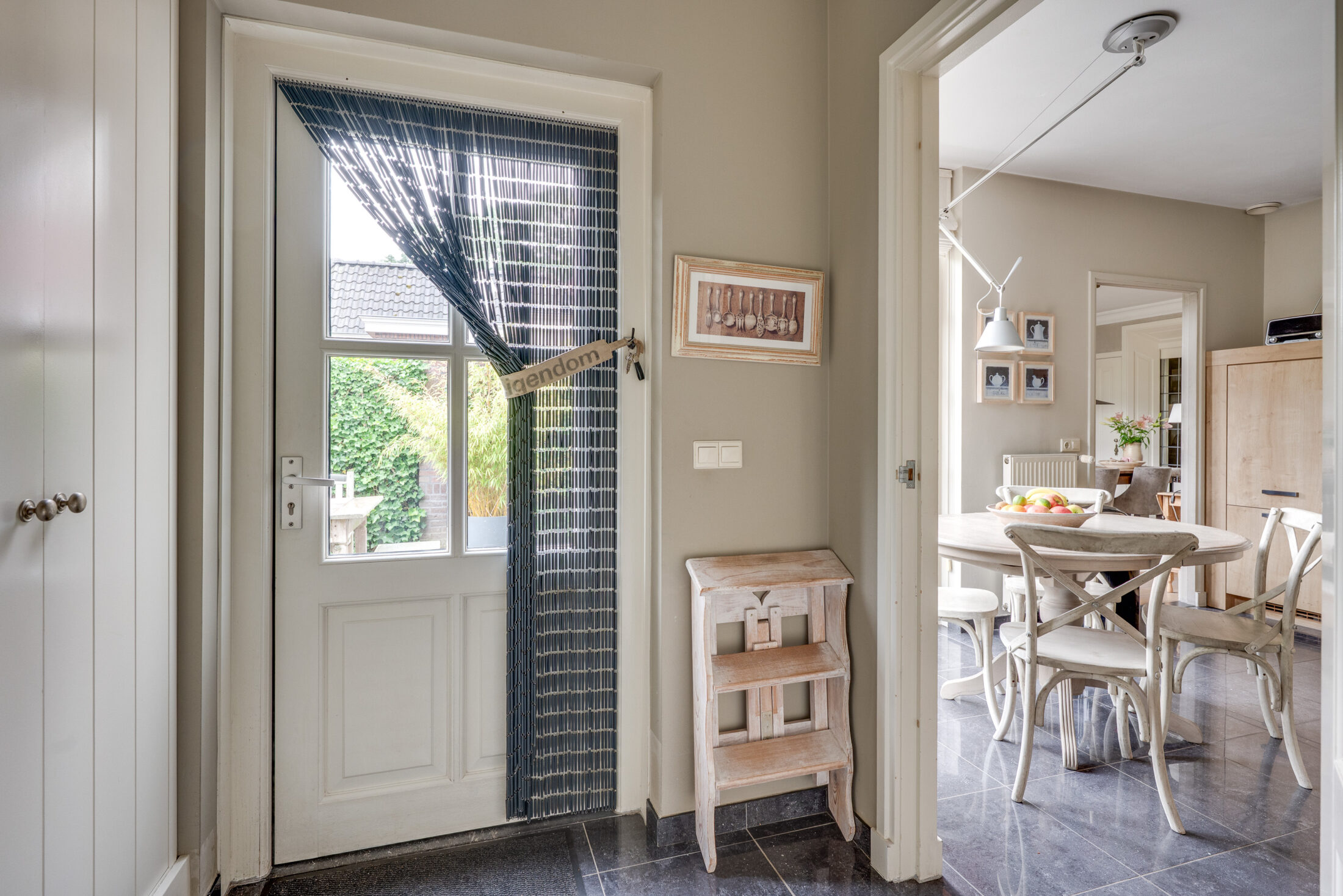 Bij aankomst parkeert u uw auto op de eigen oprit. Een stijlvolle, klassieke voordeur met prachtige natuursteenomlijsting geeft u toegang tot een ruime sfeervolle hal.
