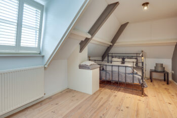 De twee slaapkamers op de tweede verdieping hebben een grenen plankenvloer en zijn net als de slaapkamers op de eerste verdieping ruim bemeten en groot genoeg om al uw benodigde meubilair te plaatsen. Beide kamers zijn voorzien van een vast werkblad met royale inbouwkasten. Dakkapellen voorzien de beide kamers van daglicht en de mogelijkheid tot ventilatie.