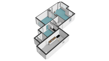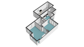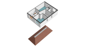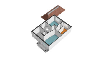 Via de trapopgang komt u op de tweede verdieping. Aan de linkerzijde treft u een washok. Hier zijn niet alleen de witgoedaansluitingen te vinden, maar ook een WTW-ventilatie-unit en de vlizotrapopgang naar de bergzolder.