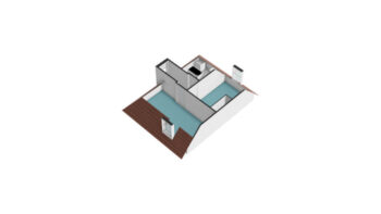 Deze riante overloop biedt u toegang tot 2 slaapkamers, waarvan momenteel een kamer in gebruik is als werkkamer, de badkamer, een separaat toilet en de vaste trapopgang naar de tweede verdieping. De toiletruimte is identiek aan die van de begane grond.